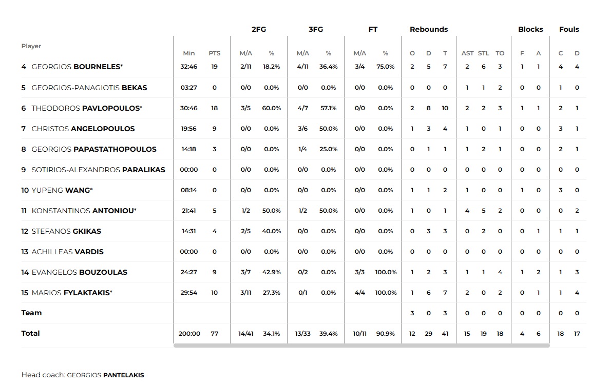 Δεκάλεπτα: 17-17, 15-25, 41-49, 52-77
