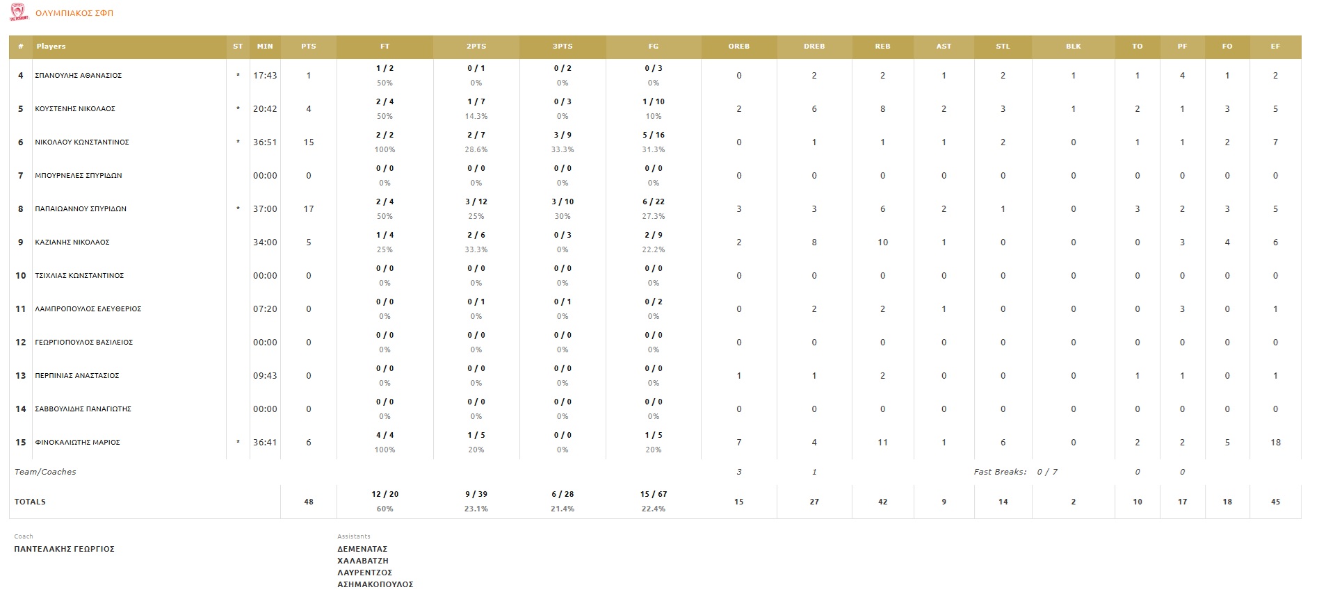 Δεκάλεπτα: 15-15, 25-23, 42-32, 56-48