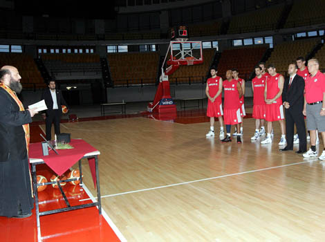Λίγη ώρα μετά την παρουσίαση της ομάδας στην αίθουσα «Μελίνα Μερκούρη» στο ΣΕΦ, οι «ερυθρόλευκοι» πραγματοποίησαν και τον αγιασμό για το καλό της χρονιάς.