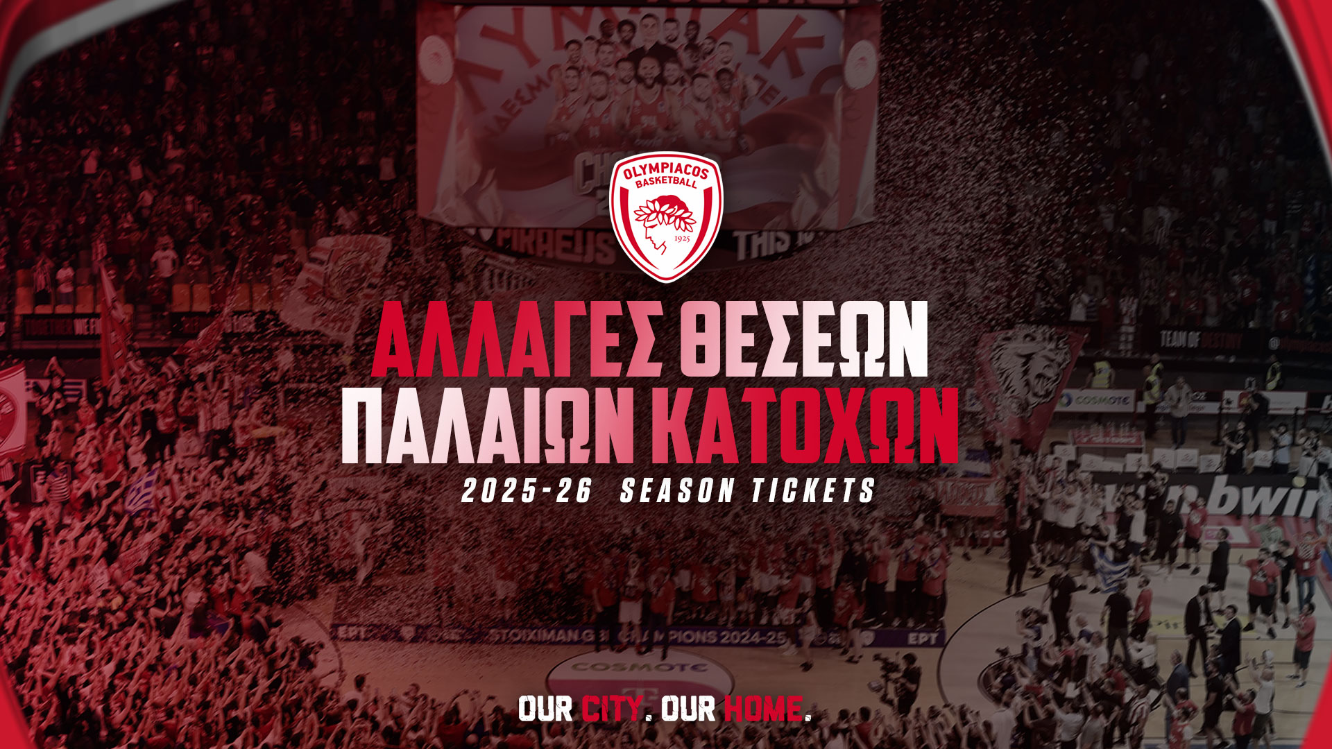 Η Κ.Α.Ε. ΟΛΥΜΠΙΑΚΟΣ ενημερώνει ότι όσοι από τους παλαιούς κατόχους διαρκείας επιθυμούν αλλαγή θέσης και ΔΕΝ ΕΧΟΥΝ ΗΔΗ ΠΡΟΒΕΙ ΣΕ ΑΓΟΡΑ, θα λάβουν την Τετάρτη 18/06/2025 μέσω email έναν μοναδικό κωδικό.
