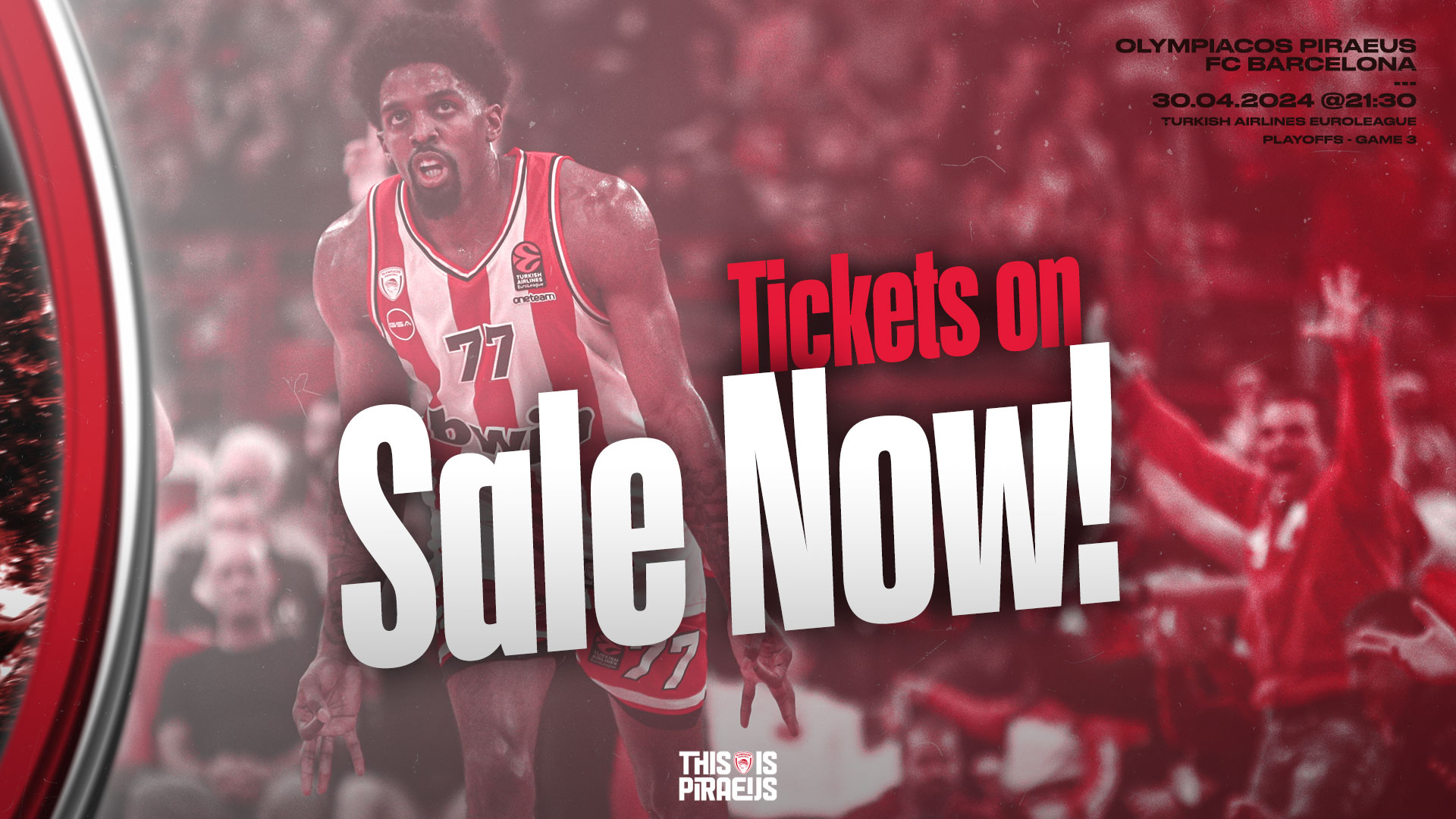 H Κ.Α.Ε ΟΛΥΜΠΙΑΚΟΣ ανακοινώνει ότι, για τον αγώνα του Ελληνικού Πρωταθλήματος Basket League 2023 - 2024 της φάσης ΤΟΡ 6 ΚΑΙ PLAY OUTS με τον ΠΡΟΜΗΘΕΑ ΠΑΤΡΩΝ της ΠΕΜΠΤΗΣ 18/04/2024, με ώρα έναρξης 17:15, η διάθεση των εισιτηρίων θα πραγματοποιηθεί ως εξής: