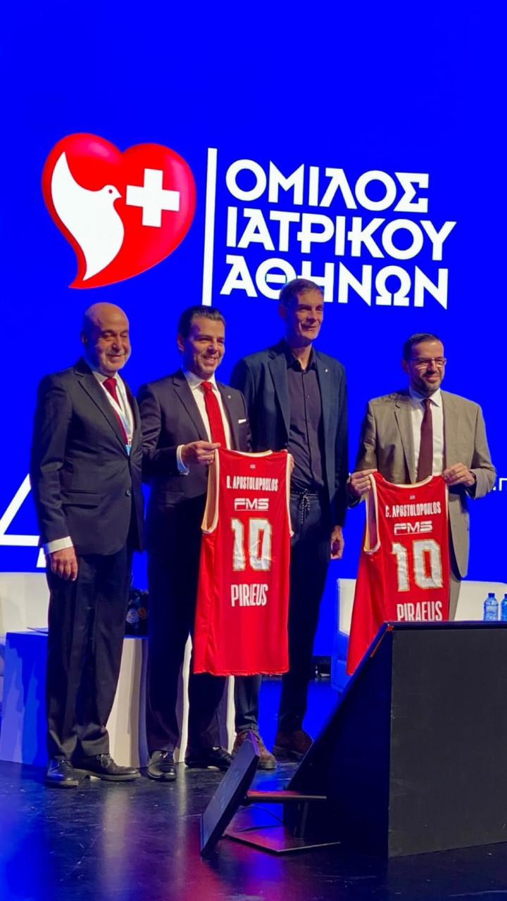 Παρόντες φυσικά στην εκδήλωση ήταν ο Διευθύνων Σύμβουλος του Ομίλου Ιατρικού Αθηνών, Δρ. Βασίλης Γ. Αποστολόπουλος και ο Εκτελεστικός Αντιπρόεδρος, κ. Χρήστος Γ. Αποστολόπουλος, οι οποίοι παρέλαβαν από τους κυρίους Τσαβίση και Μπαρτζώκα τις ερυθρόλευκες φανέλες με το Νο.10 και τα ονόματα τους.