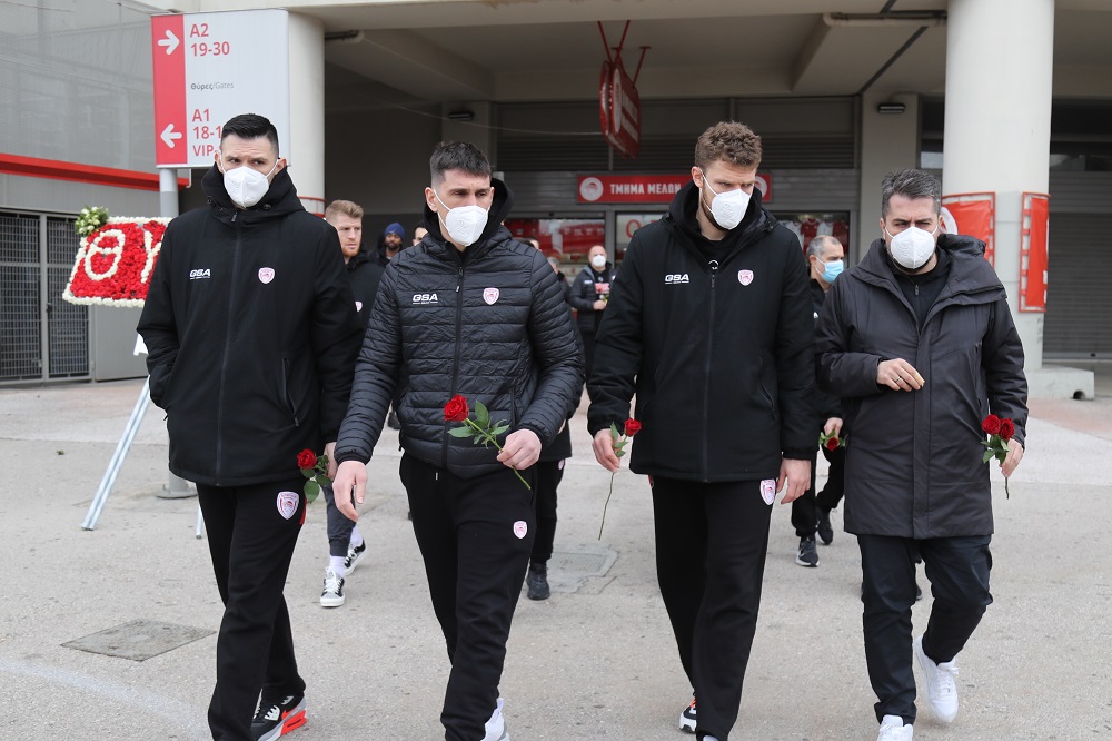 Ο αρχηγός, Γιώργος Πρίντεζης, εναπόθεσε στεφάνι, ενώ όλα τα μέλη της ομάδας άφησαν από ένα κόκκινο τριαντάφυλλο.