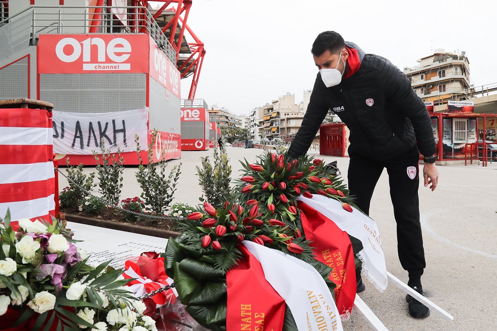 Το μεσημέρι της Τρίτης (08/02) σύσσωμη η ομάδα του Ολυμπιακού επισκέφθηκε το μνημείο των θυμάτων της Θύρας 7 και απέτισε φόρο τιμής στους 21 αδικοχαμένους φιλάθλους.