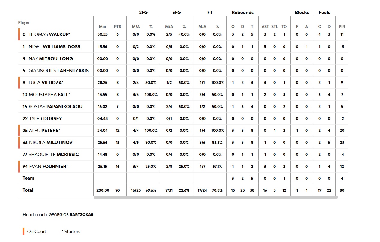 Δεκάλεπτα: 16-25, 38-36, 50-57, 78-70