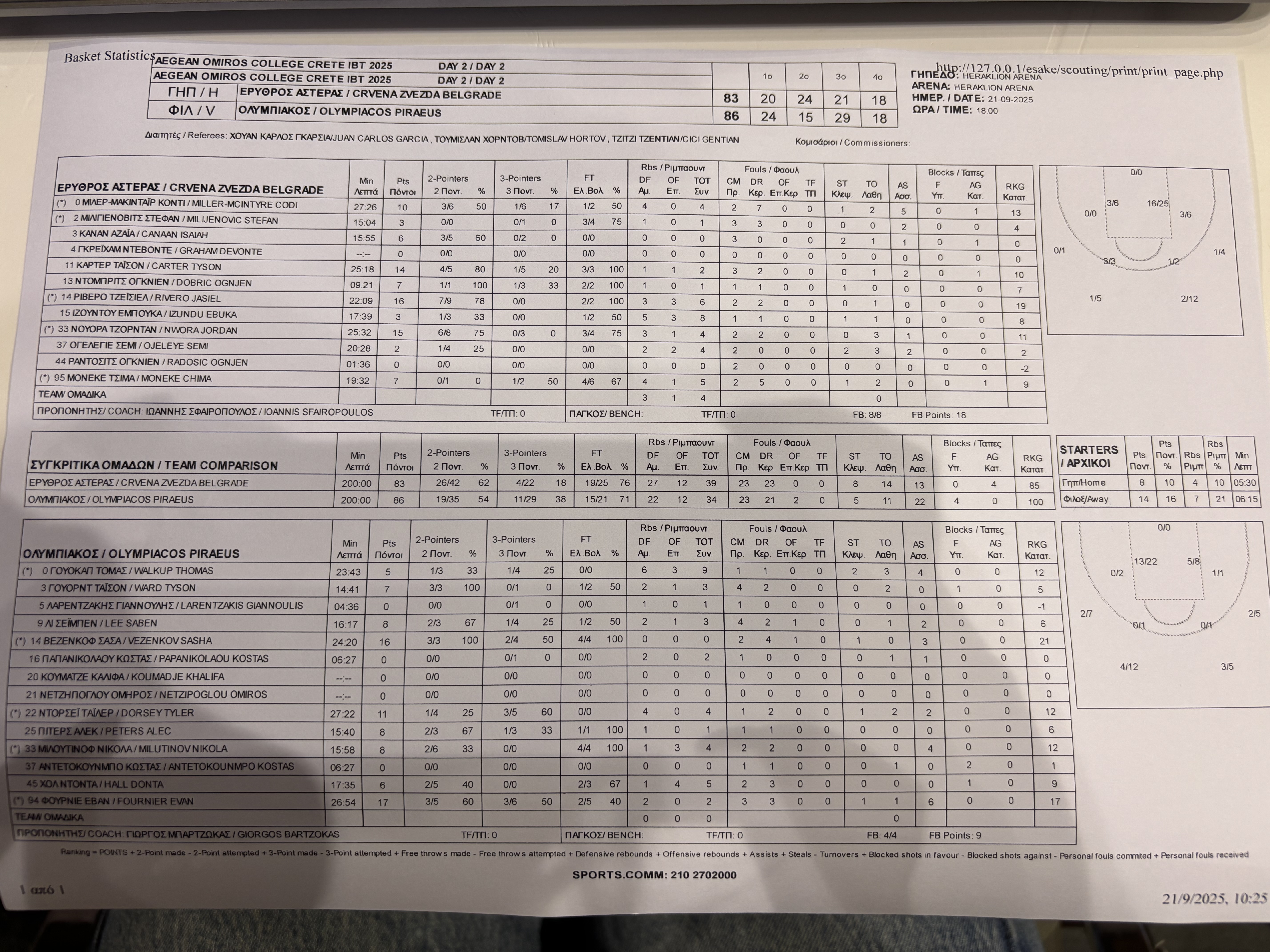 Ι.Β.Τ. Crete: Ερυθρός Αστέρας - Ολυμπιακός 83-86