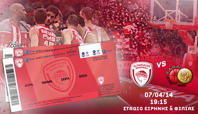 Η Διεύθυνση Εισιτηρίων της Κ.Α.Ε. ΟΛΥΜΠΙΑΚΟΣ ανακοινώνει ότι η διάθεση των εισιτηρίων για τον αγώνα Ελληνικού Πρωταθλήματος με τον ΚΑΟ ΔΡΑΜΑΣ, ο οποίος θα διεξαχθεί την Δευτέρα 07/04/ 2014 με ώρα έν…