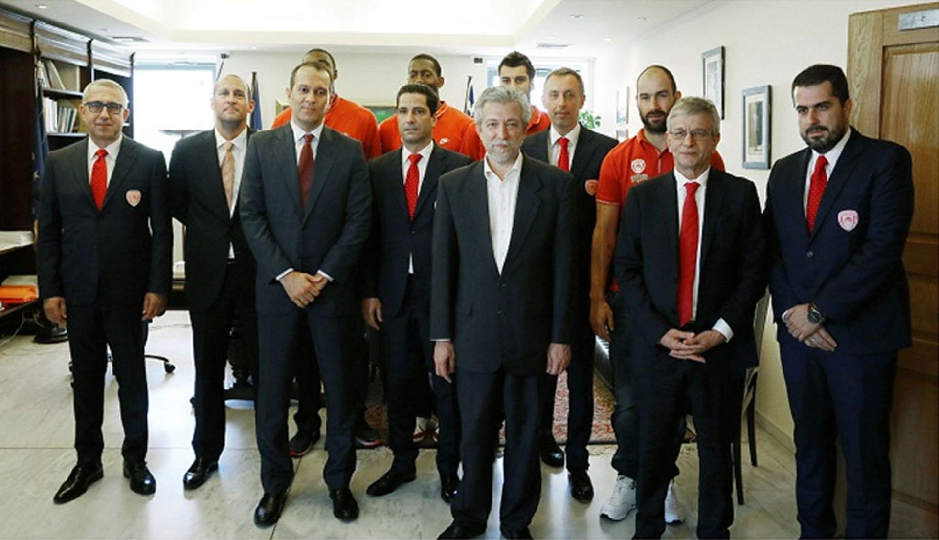 Το μεσημέρι της Δευτέρας (25/5) ο Υφυπουργός Αθλητισμού κύριος Σταύρος Κοντονής δέχτηκε στο γραφείο του τους προέδρους της ΚΑΕ Ολυμπιακός, κυρίους Αγγελόπουλος, τον αντιπρόεδρο της ομάδας, κύριο Γιώργο Σκινδήλια, τον Γενικό Διευθυντή της ΚΑΕ, κύριο Σταυρόπουλο, τον προπονητή, Γιάννη Σφαιρόπουλο και τους Βασίλη Σπανούλη, Γιώργο Πρίντεζη, Οθέλο Χάντερ και Μπράιαντ Ντάνστον.