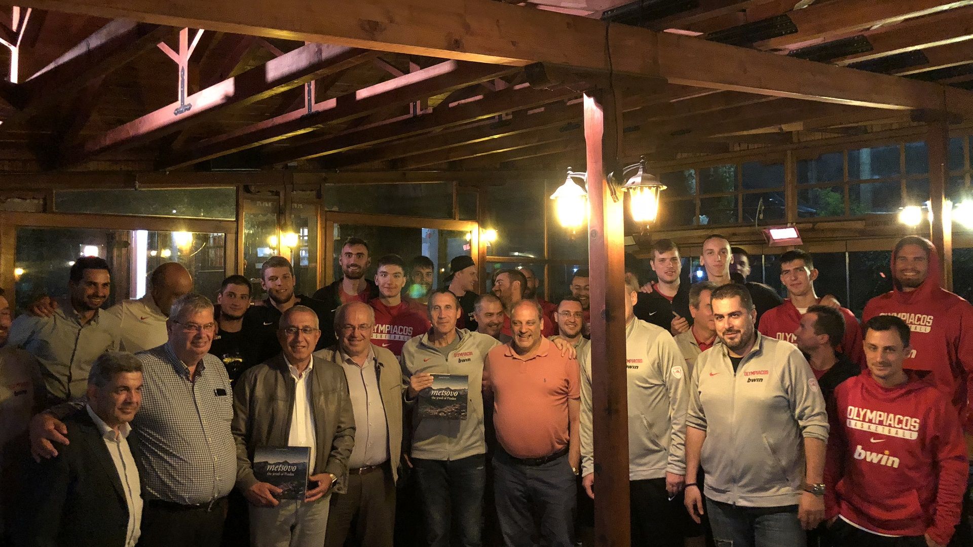 Το βράδυ της Τρίτης (28/08) η αποστολή του Ολυμπιακού επισκέφτηκε το κέντρο του Μετσόβου και δείπνησε στο εστιατόριο «Γαλαξίας» μαζί με τον Περιφερειάρχη Ηπείρου Αλέξανδρο Καχριμάνη και τον Δήμαρχο Μετσόβου Κωνσταντίνο Τζαφέα.