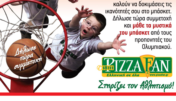 PIZZA FAN and the European and Greek Champion Olympiacos organize the second season of the "Seeking tomorrow's talent" camp and invite you to try your basketball skills.