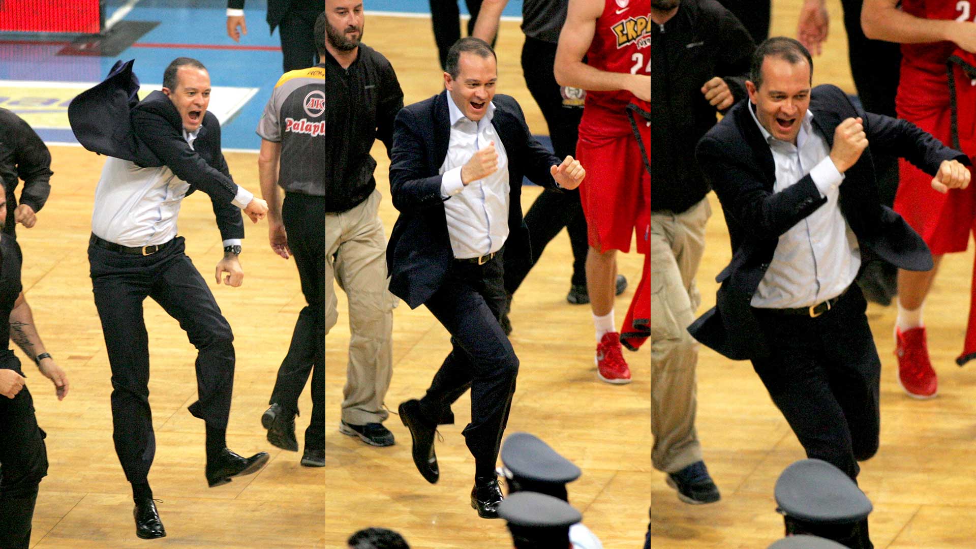 Next season, the Presidents of Olympiacos celebrate winning the most special championship in the team's history. The two buzzer beating threes by Vassilis Spanoulis in the second and fourth final, lead the 'reds' to second League title in a row, while in 2017, the Piraeus team make one more Final Four, this time in Istanbul, eliminate CSKA in the semis but fall short against the 'hosting' team of Fenerbahce.