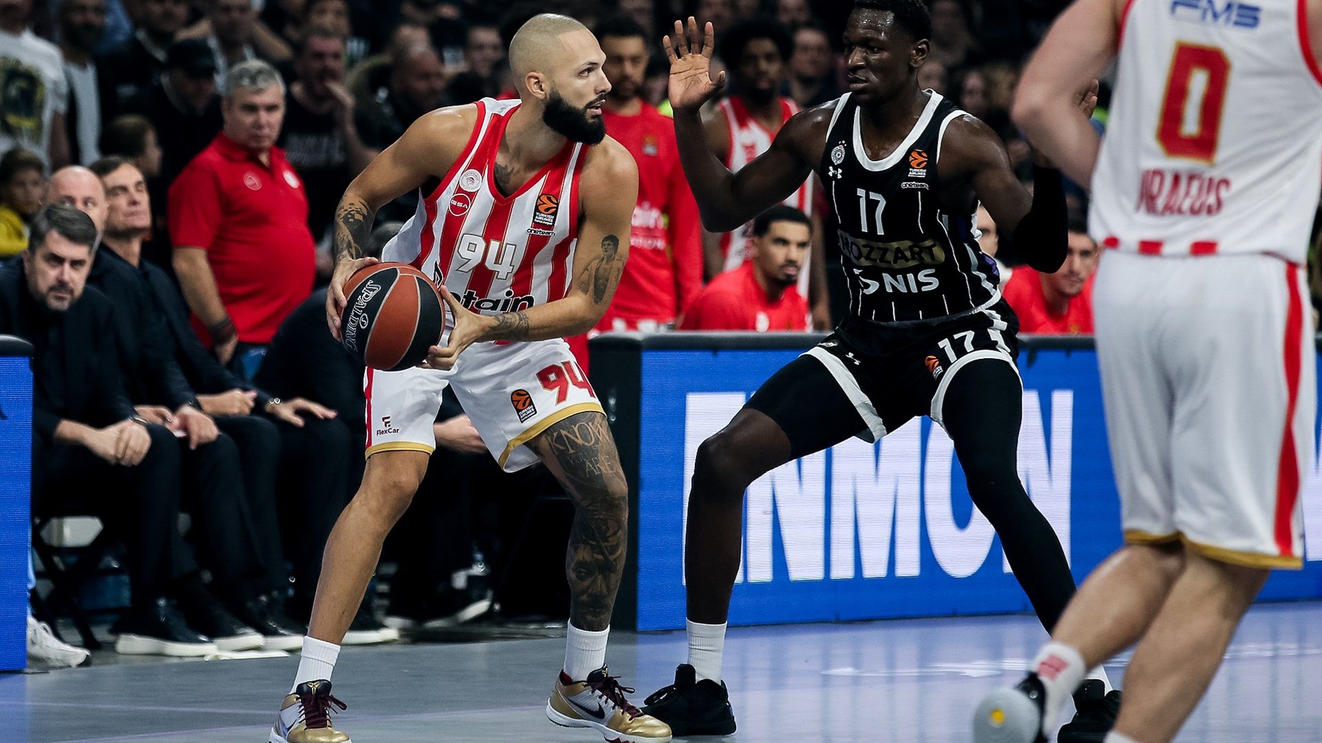 In the third quarter, clear thinking and calm returned in our offense, at the time when focus on the defensive end remained at high levels. Two back to back buckets by Moustapha Fall and Luca Vildoza that produced additional free throws shaped the 4-44 score (22') and one more by Alec Peters brought us to +6 (43-49, 26'). Nikola Milutinov's persistence on an offensive play that seemed hopeless made the score 45-51 (26'), while five consecutive points by Peters were decisive for the +7 that marked the end of the third quarter (50-57). In the final ten minutes, Olympiacos began with a huge three by Kostas Papanikolaou that offered us a 7 point margin (53-60, 32'). The unsportsmanlike foul he was charged with then though gave Partizan the chance to gain momentum and run a partial 12-2 score (65-62, 35'). Poor shooting from the perimeter and bad choices when attacking in general allowed the hosts to get ahead with a significant lead (72-63, 36'). A bucket and an additional free throw by Evan Fournier (72-66) did not signal the beginning of our team's comeback, that lost 78-70 in Belgrade.