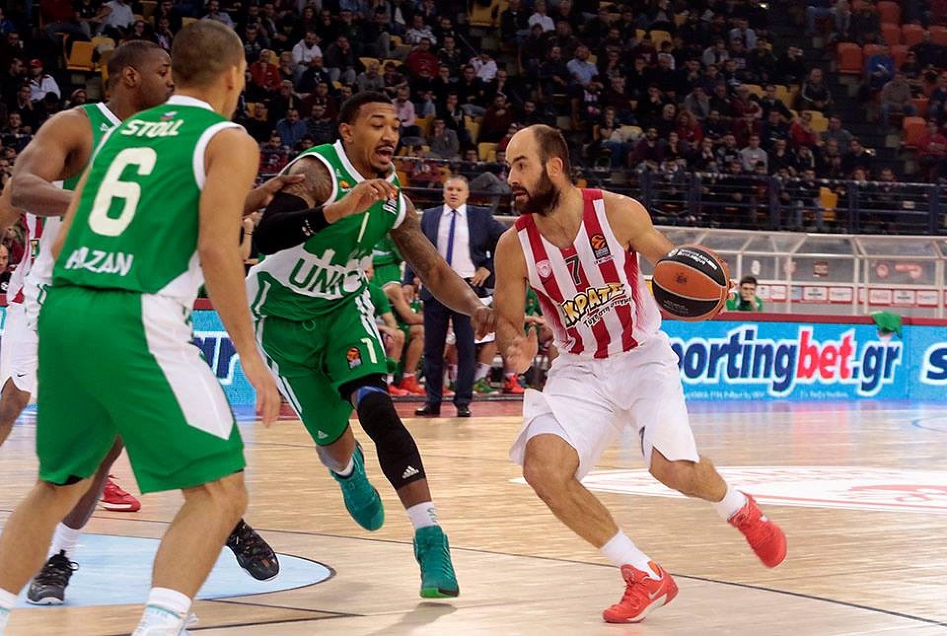 GIANNIS SFAIROPOULOS: "Hackett suffered a muscle rapture and he will be probably away for a long time. We played a very good defensive game, one of our best in the season, we were focused into stopping their creativity and scoring, and we kept Langford at low standards, since although he scored 25, he had only scored 11 up to the third quarter. His scoring at the end was of no significance, while he had no assists either. We also did a very good job with Colom as well, who is a very important player for Unics and he has had double digits in assists in previous games. Parakshouski was also out of game rhythm due to good one on one defense, but also adaptations of team defense. A game that seemed so easy at the end, was really not one at all. My players made it an easy one, because they played well on both ends of the floor. We played a great team game, with good rotation, five double digit players and had the opportunity to use all our players who responded very well. We have to forget about this game and focus on the Sunday game against Rethymno. I would like to thank our fans for coming here to support us.".