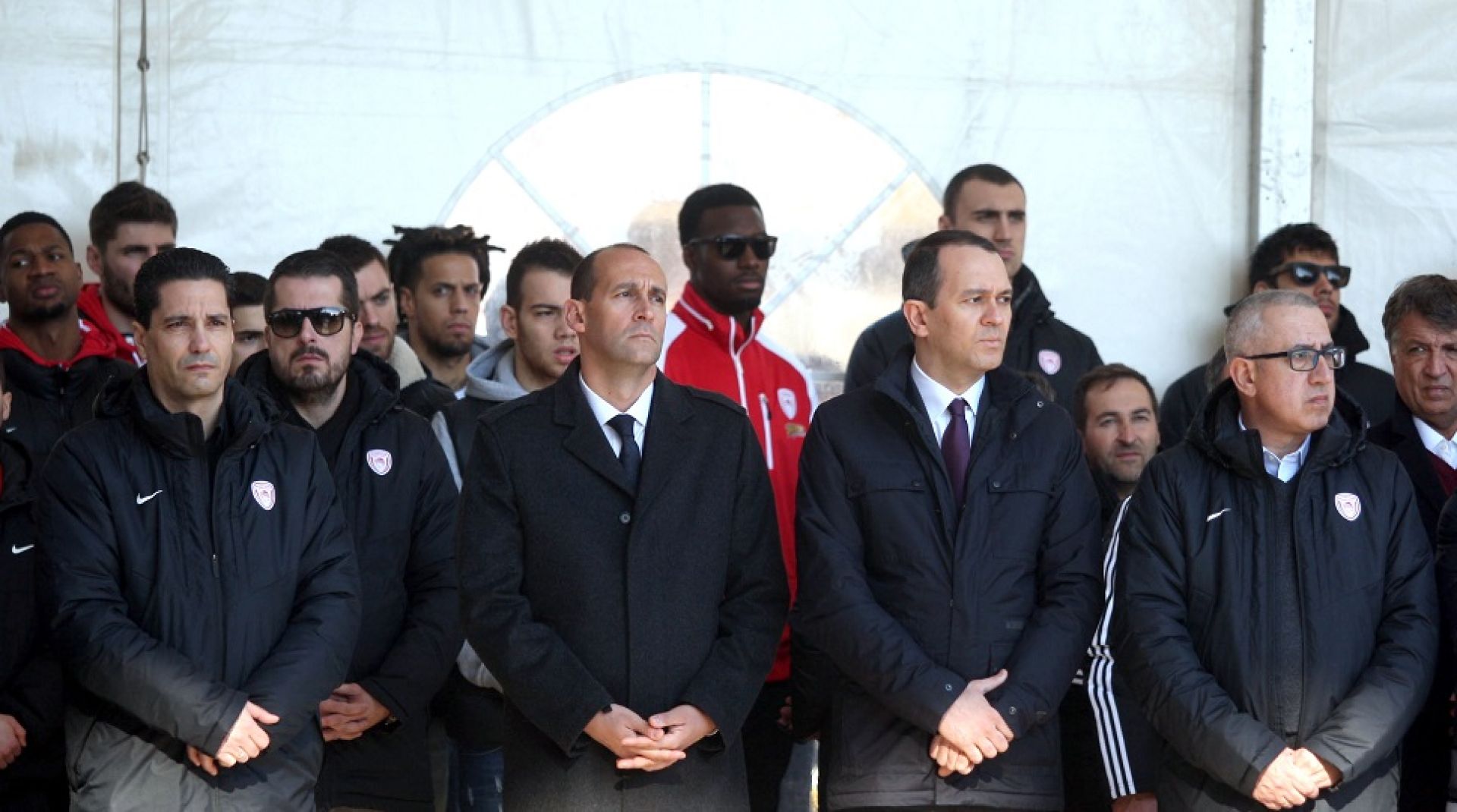 The whole basketball team was at the memorial service that place today at the “G. Karaiskakis” stadium. Leading the delegation were the Presidents Panagiotis and Giorgos Angelopoulos and all the members of the basketball team.