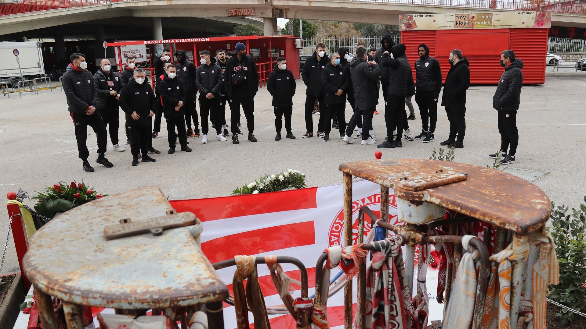 Tuesday noon (08/02) the whole team of Olympiacos visited the monument commemorating the victims of Gate 7 and paid tribute to the 21 tragically lost fans.