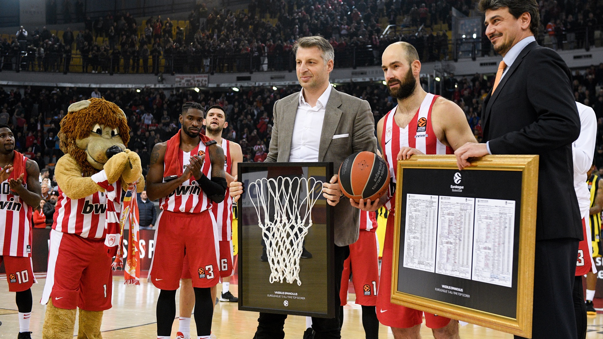 Before the jump ball of the game against Alba Berlin, Olympiacos BC honored Vassilis Spanoulis on his big record, that is his emergence as the top scorer in the history of the Euroleague.