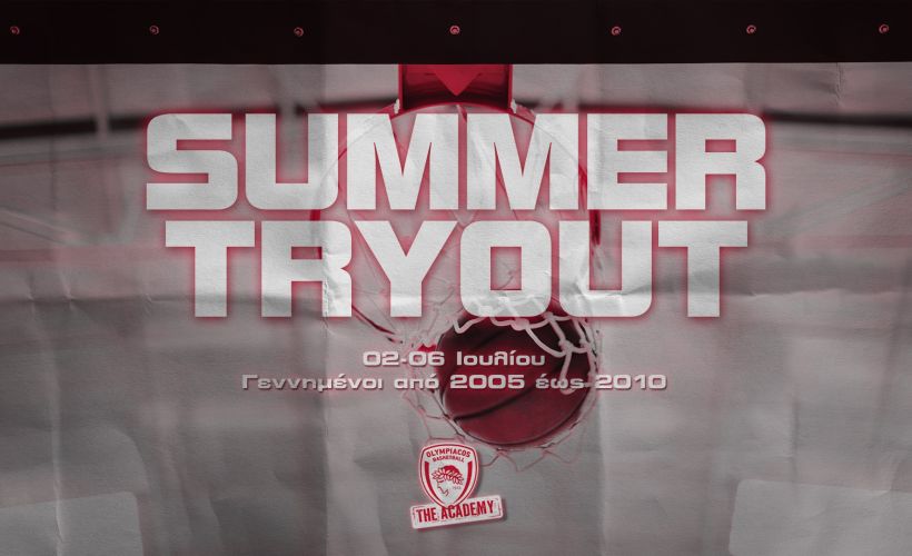Από την Πέμπτη (02/07) και έως την Δευτέρα (06/07) θα πραγματοποιηθούν στα βοηθητικά γήπεδα του ΣΕΦ try outs για αθλητές γεννημένους από 2005 έως 2010.