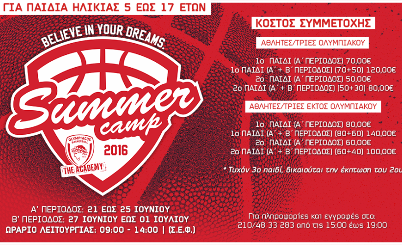 Για άλλη μια χρονιά, η Ακαδημία του Πρωταθλητή Ελλάδας Ολυμπιακού διοργανώνει καλοκαιρινό Camp στα γήπεδα του Σταδίου Ειρήνης & Φιλίας.