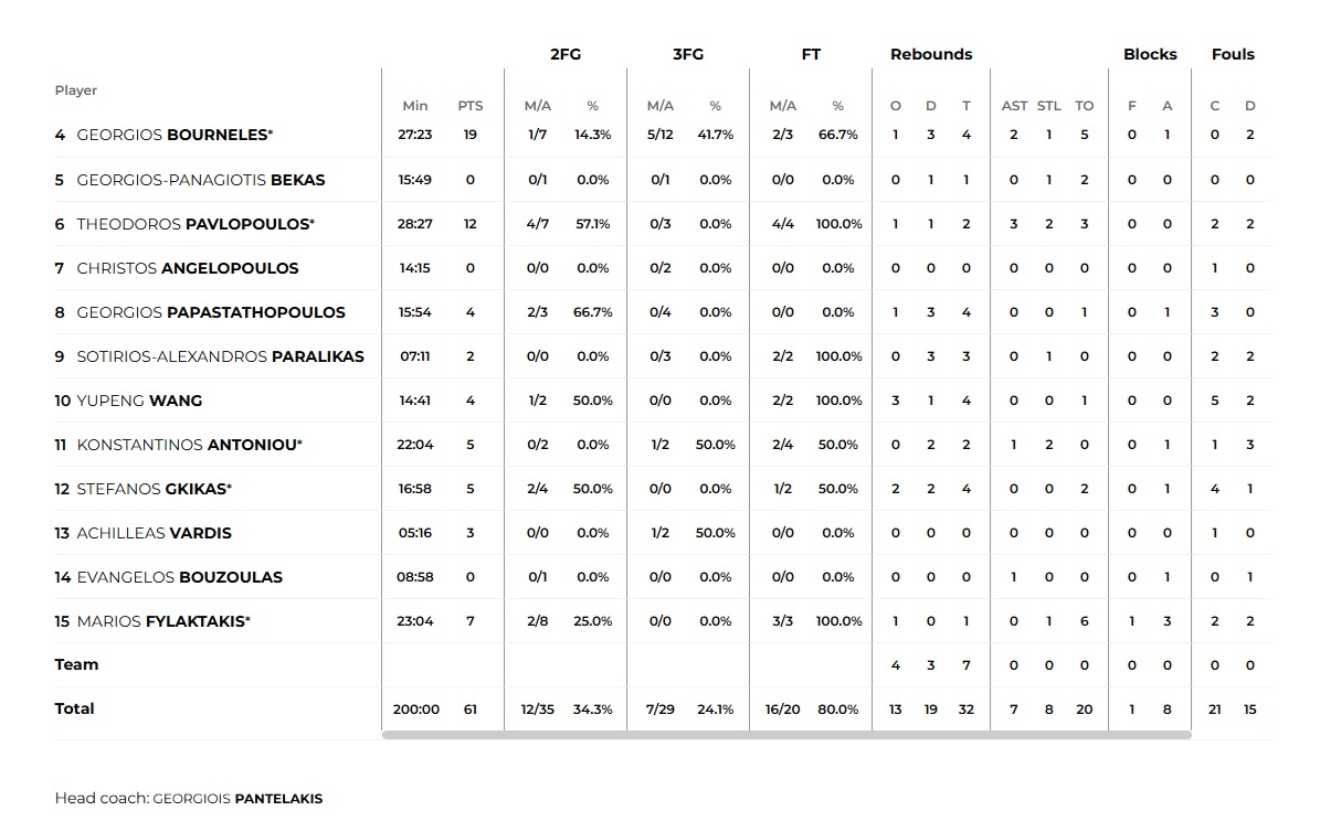 Δεκάλεπτα: 29-6, 63-23, 80-50, 109-61