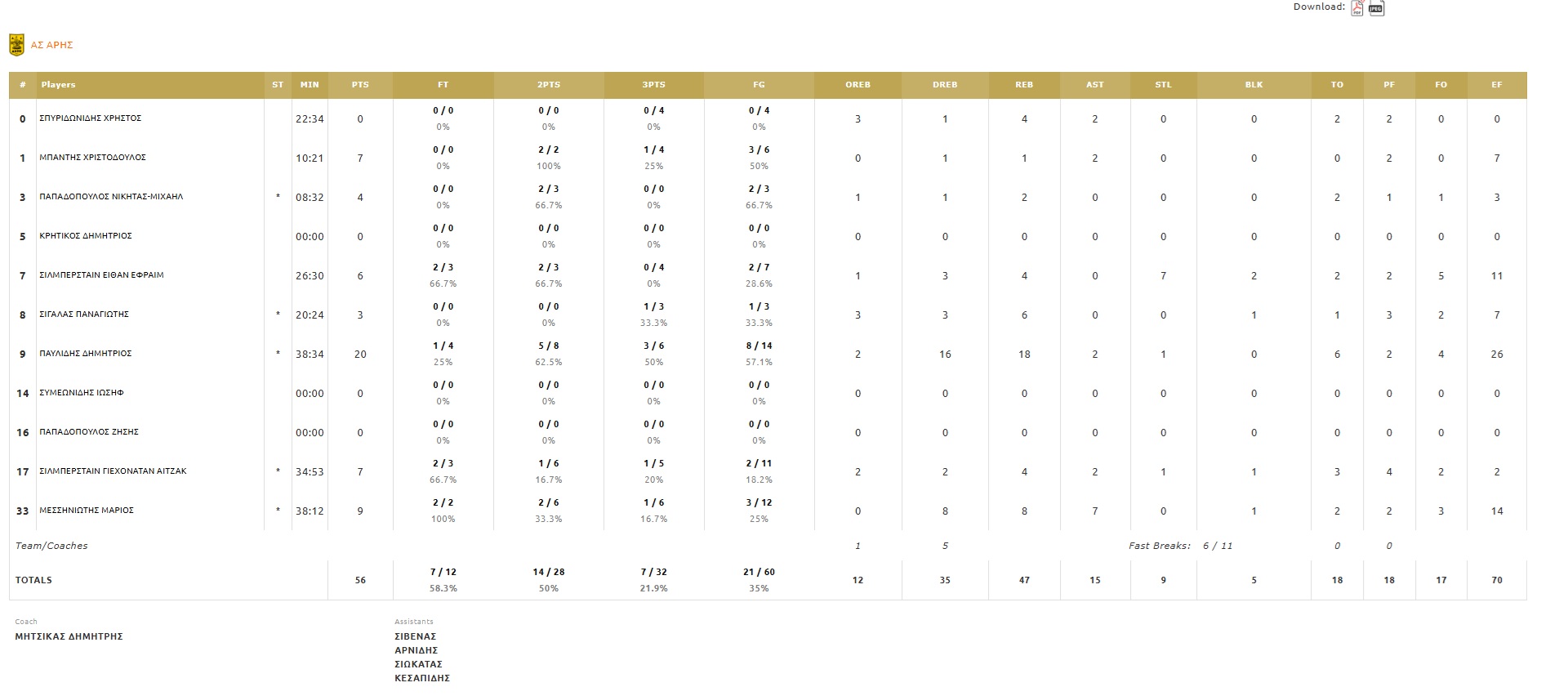 Δεκάλεπτα: 15-15, 25-23, 42-32, 56-48