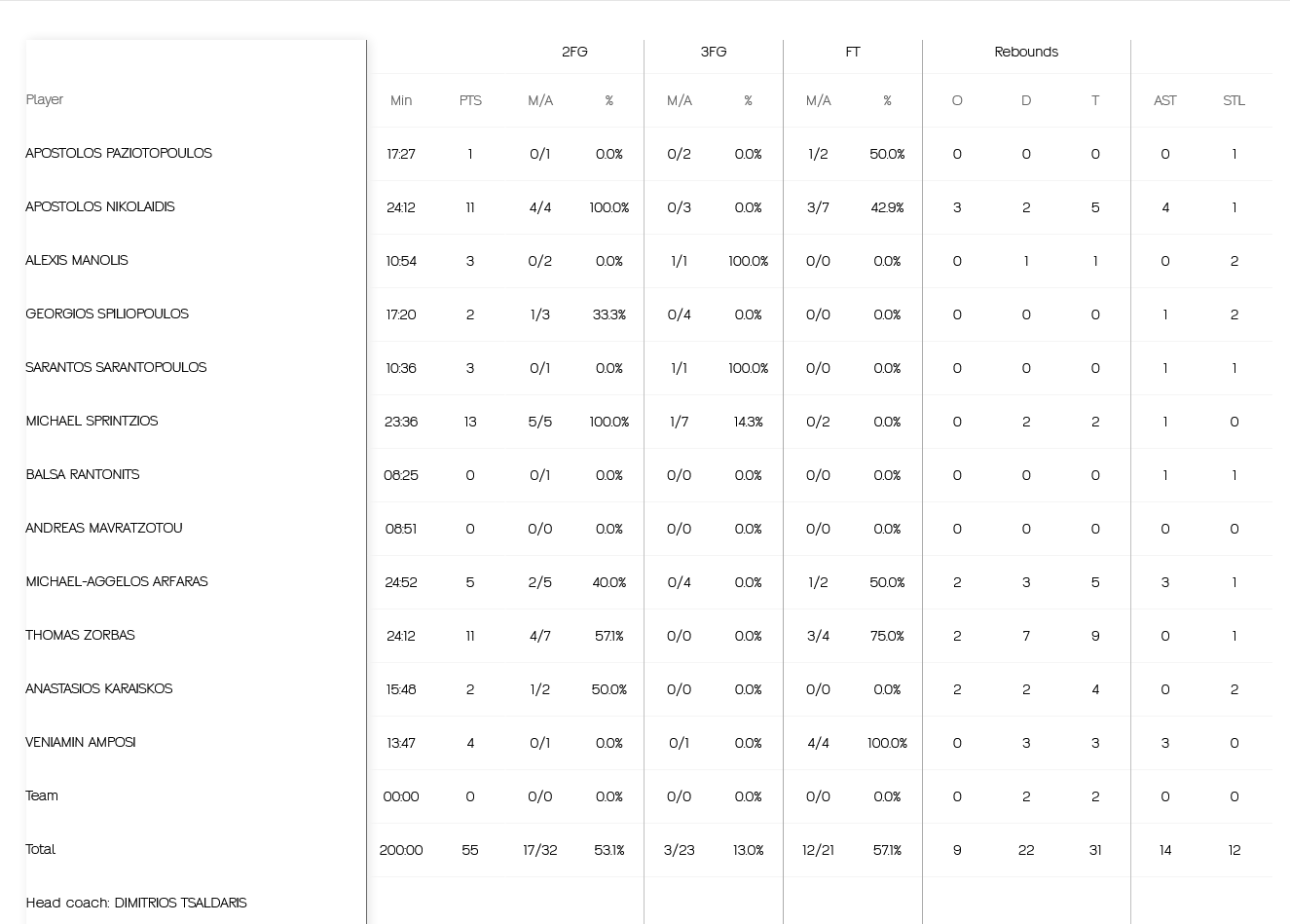Δεκάλεπτα: 20-15, 45-25, 64-38, 88-55.