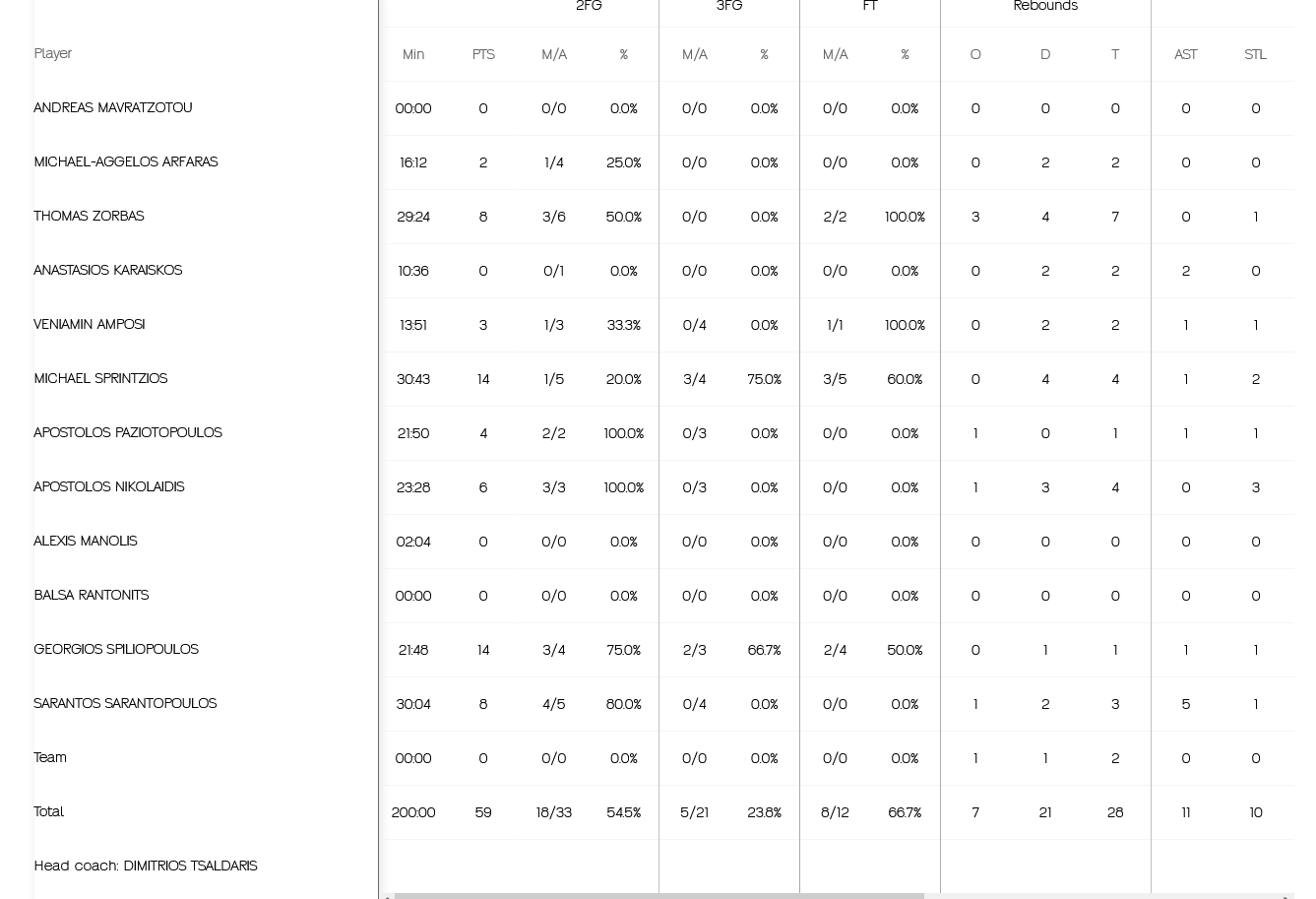 Δεκάλεπτα: 13-14, 29-31, 43-43, 59-57.