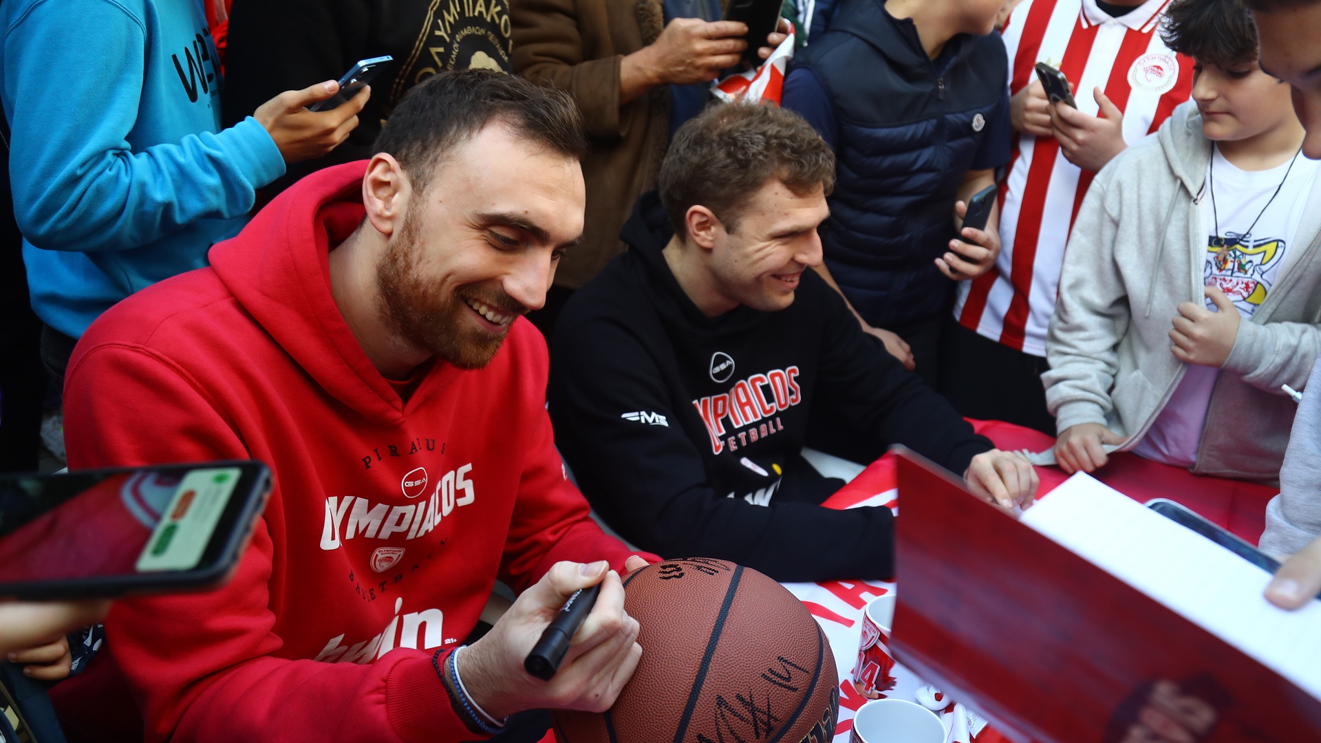 Η Πλατεία Κοραή «ντύθηκε» στα ερυθρόλευκα το μεσημέρι της Τρίτης (23/12), με χιλιάδες φίλους του Ολυμπιακού να δίνουν δυναμικό «παρών» για να συναντήσουν από κοντά τους Σάσα Βεζένκοφ και Νίκολα Μιλουτίνοφ, καλεσμένους του Official Road Store.