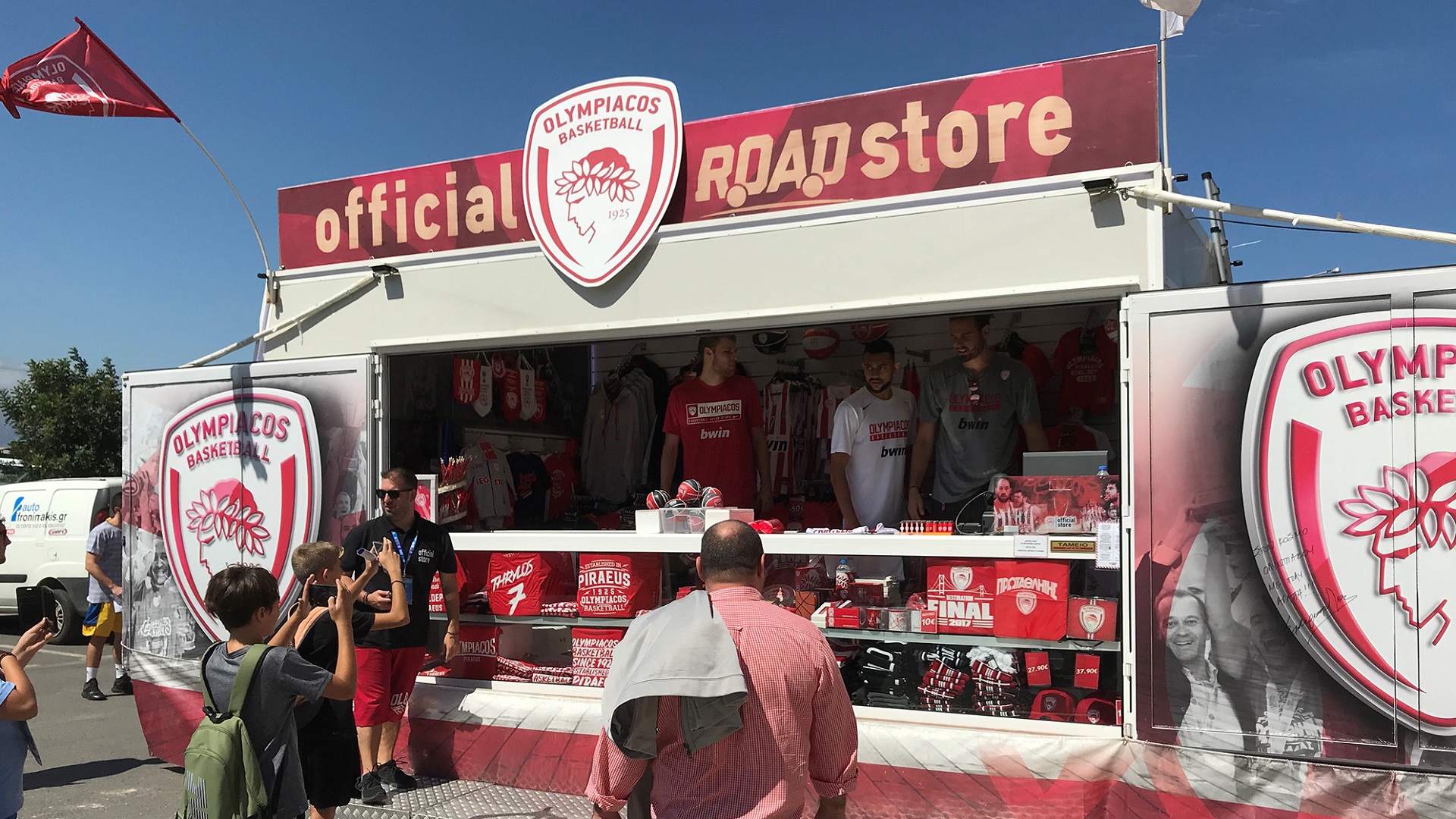 Οι Νάιτζελ Γουίλιαμς Γκος, Σάσα Βεζένκοφ, Γιώργος Μπόγρης, Βασίλης Τολιόπουλος και Αλεξέι Ποκουσέφσκι βρέθηκαν στο Olympiacos BC Road Store για τις αγορές τους, όμως, δεν περιορίστηκαν σε ρόλο πελάτη!
