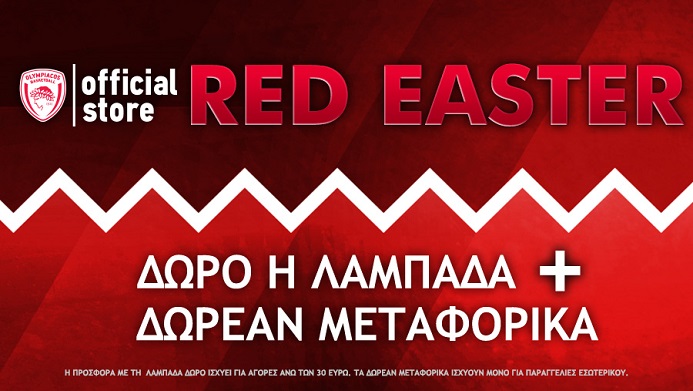Είσαι Νονός και Ολυμπιακός; Αυτό το Πάσχα το Official Olympiacos Bc Store σας κάνει Δώρο τη λαμπάδα με κάθε αγορά από το επίσημο κατάστημα της ΚΑΕ Ολυμπιακός (Καραολή Δημητρίου 8, Ν. Φάληρο-Πειραιά έναντι Γηπ. Καραϊσκάκης), ενώ σας προσφέρει και επιπλέον δωρεάν τα μεταφορικά στις online αγορές σας…