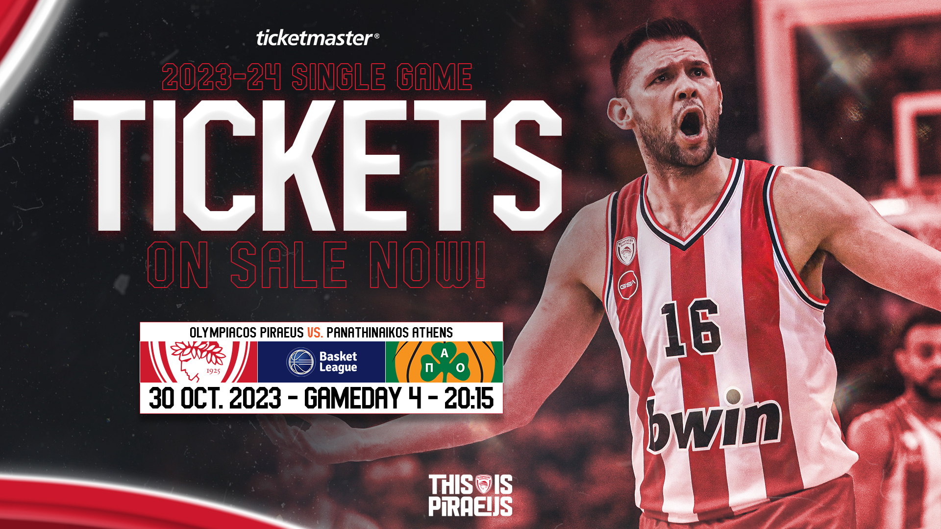 H Κ.Α.Ε ΟΛΥΜΠΙΑΚΟΣ ανακοινώνει ό,τι για τον αγώνα του Ελληνικού Πρωταθλήματος Basket League 2023 - 2024 με τον ΠΑΝΑΘΗΝΑΪΚΟ της ΔΕΥΤΕΡΑΣ 30/10/2023, με ώρα έναρξης 20:15, η διάθεση των εισιτηρίων θα πραγματοποιηθεί ως εξής: