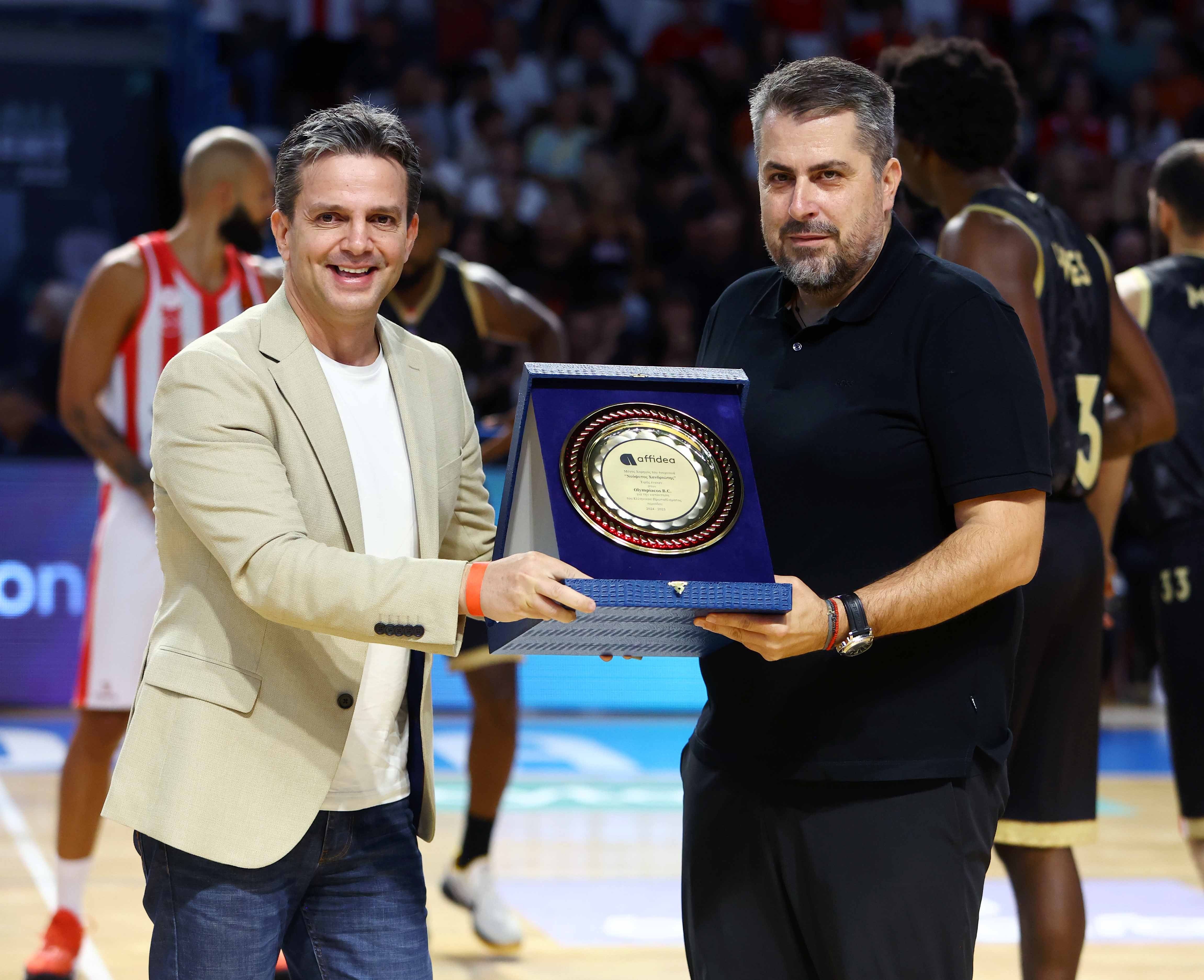 Επιπλέον, ο Διευθύνων Σύμβουλος της Affidea Ελλάδας (χορηγοί του τουρνουά) κ. Θοδωρής Καρούντζος παρέδωσε τιμητική πλακέτα στον Sports Director του Ολυμπιακού Χρήστο Μπαφέ για την κατάκτηση του πρωταθλήματος Ελλάδας 2024-25.