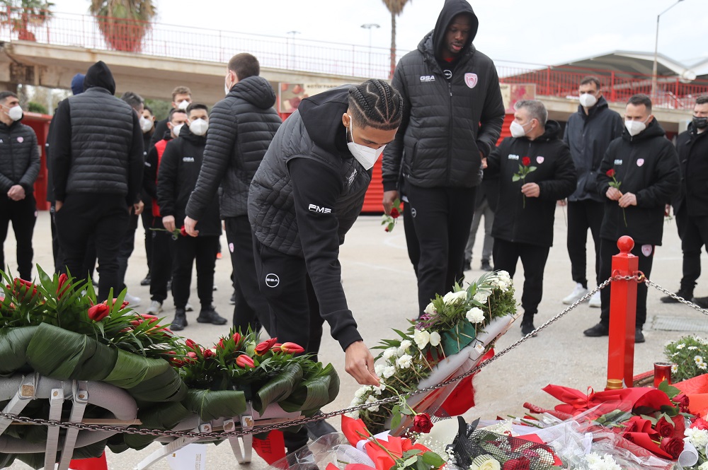 Ο αρχηγός, Γιώργος Πρίντεζης, εναπόθεσε στεφάνι, ενώ όλα τα μέλη της ομάδας άφησαν από ένα κόκκινο τριαντάφυλλο.
