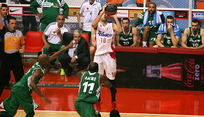Ο Ολυμπιακός νίκησε 93-90 εκτός έδρας τον Πανιώνιο στην παράταση με τρίποντο του Βασίλη Σπανούλη, έκανε το 3-0 και προκρίθηκε στον τελικό του πρωταθλήματος.