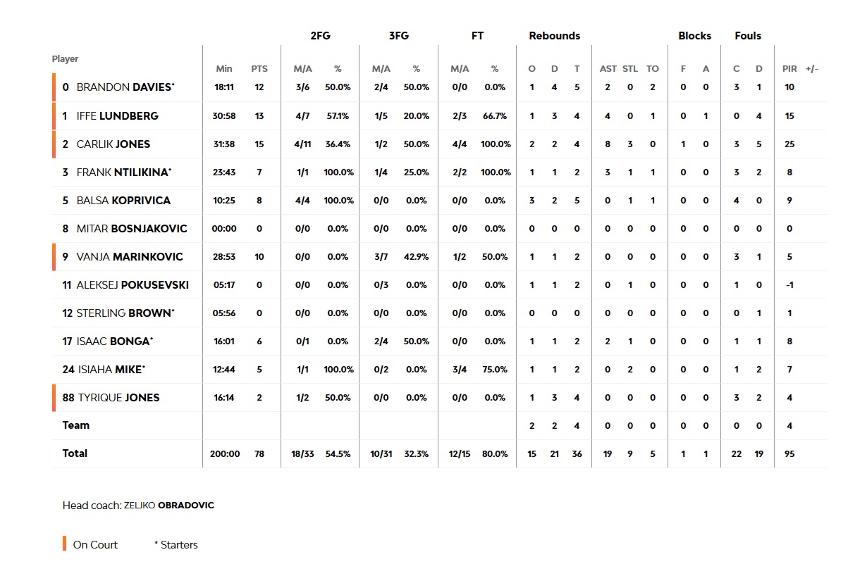 Το 8-0 του Ολυμπιακού στο πρώτο 1,5 λεπτό του αγώνα με την Παρτιζάν φωτογραφίζει το υπέροχο ξεκίνημα της ομάδας μας στο Βελιγράδι. Οι «ερυθρόλευκοι» πάγωσαν την Stark Arena με πολύ καλή κυκλοφορία της μπάλας και συγκέντρωση στην άμυνα (5-15, 3'), έχοντας 6/6 σουτ (2/2 2π. και 4/4 3π.). Δύο διαδοχικά τρίποντα των Τόμας Γουόκαπ και Εβάν Φουρνιέ διαμόρφωσαν το +13 για τους Πειραιώτες (8-21, 5') που έκλεισαν το πρώτο δεκάλεπτο με μια σειρά κακών επιλογών επιθετικά που επέτρεψε στην Παρτιζάν να μειώσει (16-25). Στη δεύτερη περίοδο, η εικόνα της ομάδας μας άλλαξε άρδην. Οι γηπεδούχοι ανέβασαν ένταση στην άμυνά τους και με υπομονή «ψαλίδισαν» τη διαφορά (23-29, 13'). Οι «ερυθρόλευκοι» από την πλευράς τους, υπέπεσαν σε πολλά λάθη και σε μια σειρά από κακές επιλογές επιθετικά. Νίκολα Μιλουτίνοφ και Άλεκ Πίτερς μάζεψαν πολλά επιθετικά ριμπάουντ, αλλά η ομάδα μας δεν τα μετουσίωσε σε πόντους, κι η Παρτιζάν πήρε για πρώτη φορά προβάδισμα στο σκορ (36-34) με 36" (36-34) να απομένουν για το ημίχρονο, το οποίο ολοκληρώθηκε στο 38-36.