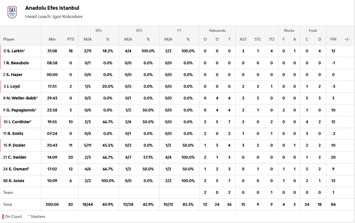 Η Εφές πήρε την πρωτοπορία στην αρχή της τελευταίας περίοδου, όμως η ομάδα μας αντέδρασε άμεσα. Ο Τάισον Γουόρντ έδωσε ενέργεια στην άμυνα και λύσεις επιθετικά. Ο Αμερικανός «τάισε» τον Ντόντα Χολ, όπως και ο Φρανκ Νιλικίνα λίγο αργότερα, με το «ερυθρόλευκο» 7-0 να διαμορφώνει ο Άλεκ Πίτερς από τα 6.75 (73-70). Το παιχνίδι ήταν ντέρμπι μέχρι τέλους, με τον Γουόρντ να πασάρει στον Χολ για το εντυπωσιακό κάρφωμα του τελευταίου (76-74), αλλά την Εφές να βρίσκει ένα μεγάλο τρίποντο και να προσπερνά στο τελευταίο λεπτό. Ο Φρανκ Νιλικίνα με προσωπική ενέργεια «έγραψε» το 78-77, η ομάδα μας όμως δε βρήκε σκορ στη συνέχεια και βρέθηκε στο -3 14" πριν το τέλος, με το παιχνίδι να ολοκληρώνεται στο 78-82.