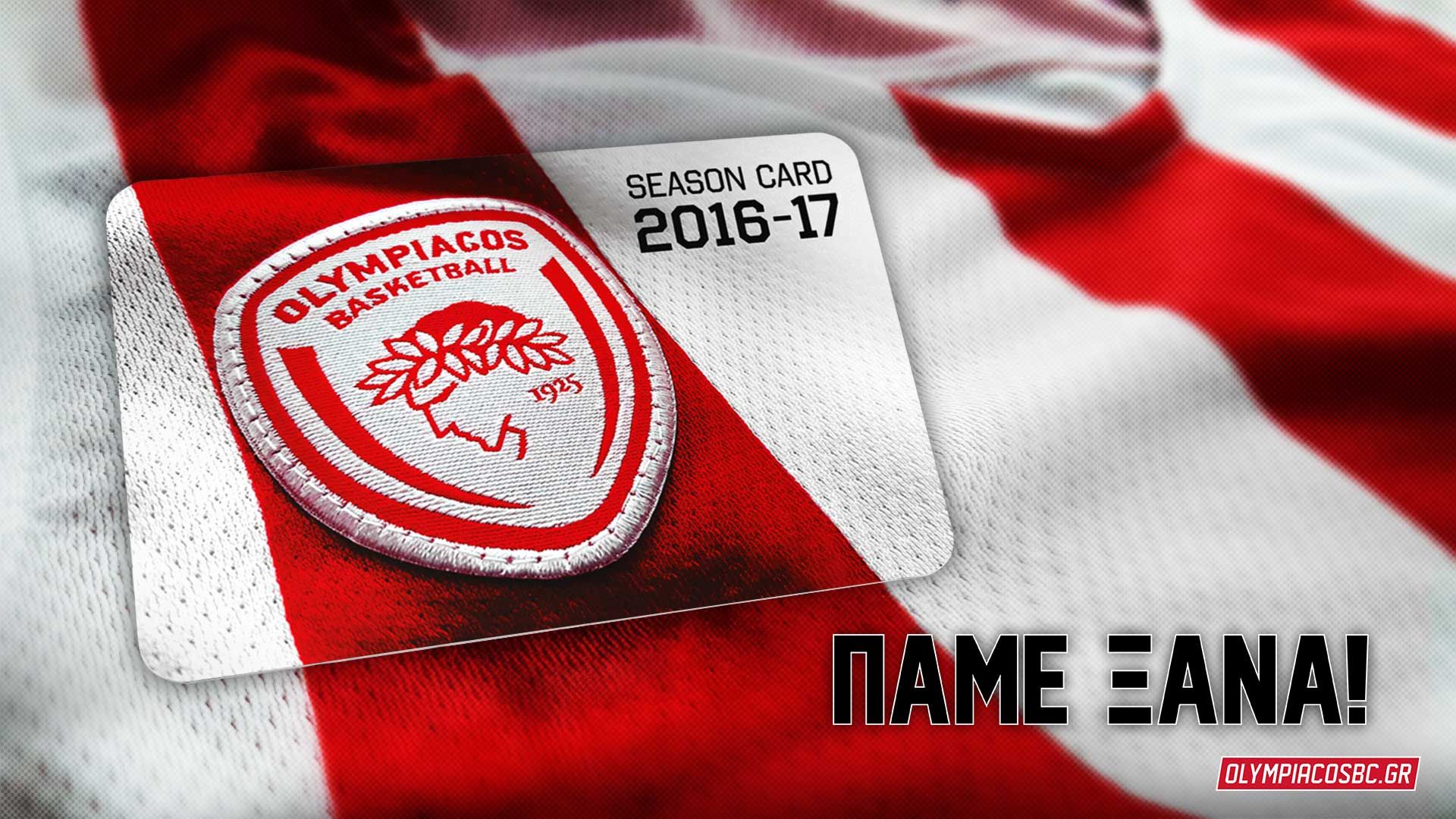 Η ΚΑΕ ΟΛΥΜΠΙΑΚΟΣ ανακοινώνει ότι η έναρξη ανανέωσης και διάθεσης των καρτών διαρκείας για τη σεζόν 2016-17 θα ξεκινήσει την Παρασκευή, 24 Ιουνίου 2016.