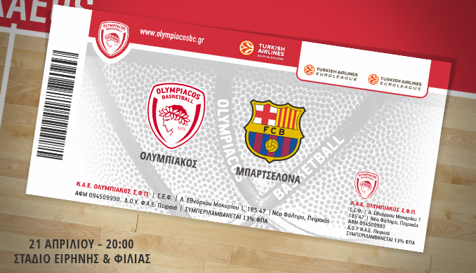 Η Διεύθυνση Εισιτηρίων της Κ.Α.Ε. ΟΛΥΜΠΙΑΚΟΣ ανακοινώνει ότι, η διάθεση των εισιτηρίων για τους αγώνες, OLYMPIACOS BC – ZALGIRIS KAUNAS, (Παρασκευή 18/03/2016 με ώρα έναρξης 21:45) και ΟΛΥΜΠΙΑΚΟΣ - Κ…