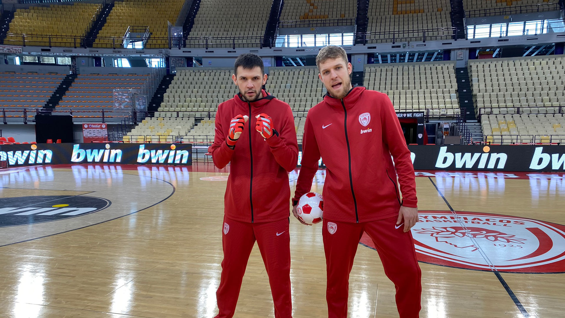 Μερικές εβδομάδες πίσω, λίγο πριν το παιχνίδι του Ολυμπιακού με τη Βαλένθια στην Ισπανία, ο Κώστας Παπανικολάου και ο Σάσα Βεζένκοφ κλήθηκαν να δείξουν τις ικανότητες τους στο ποδόσφαιρο και για τις ανάγκες του βίντεο το παρκέ του ΣΕΦ μετατράπηκε σε… Καραϊσκάκη.