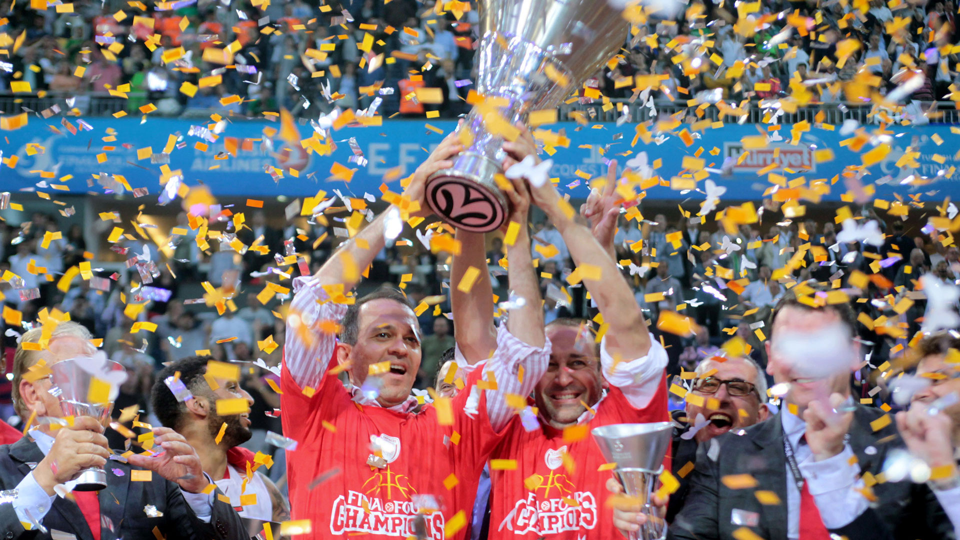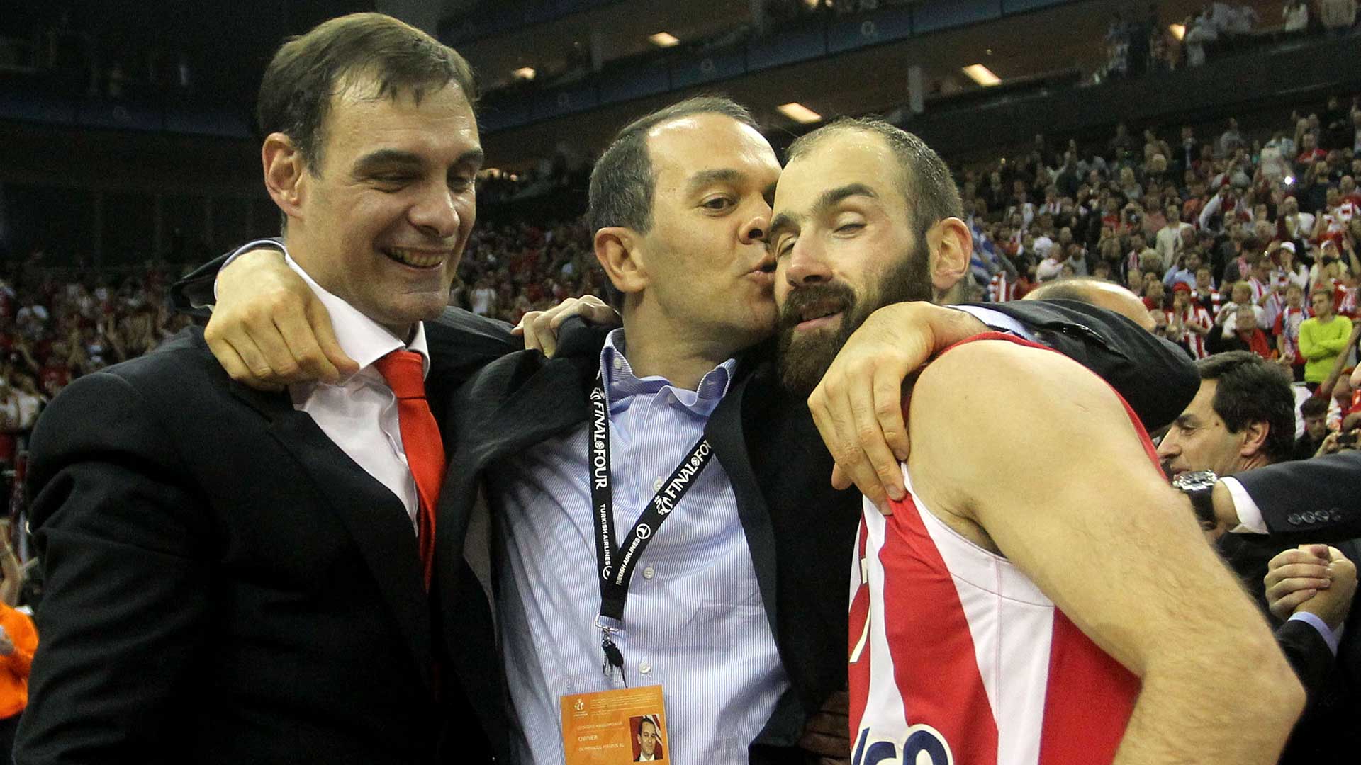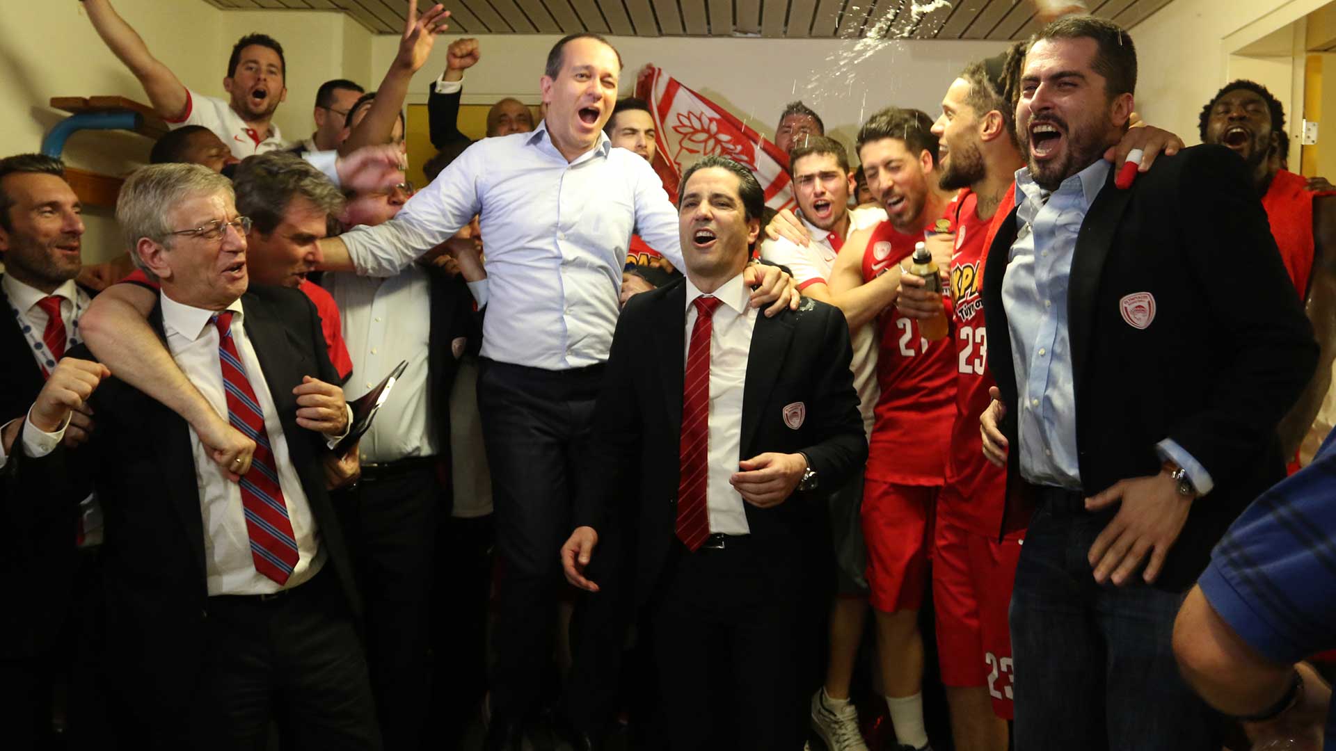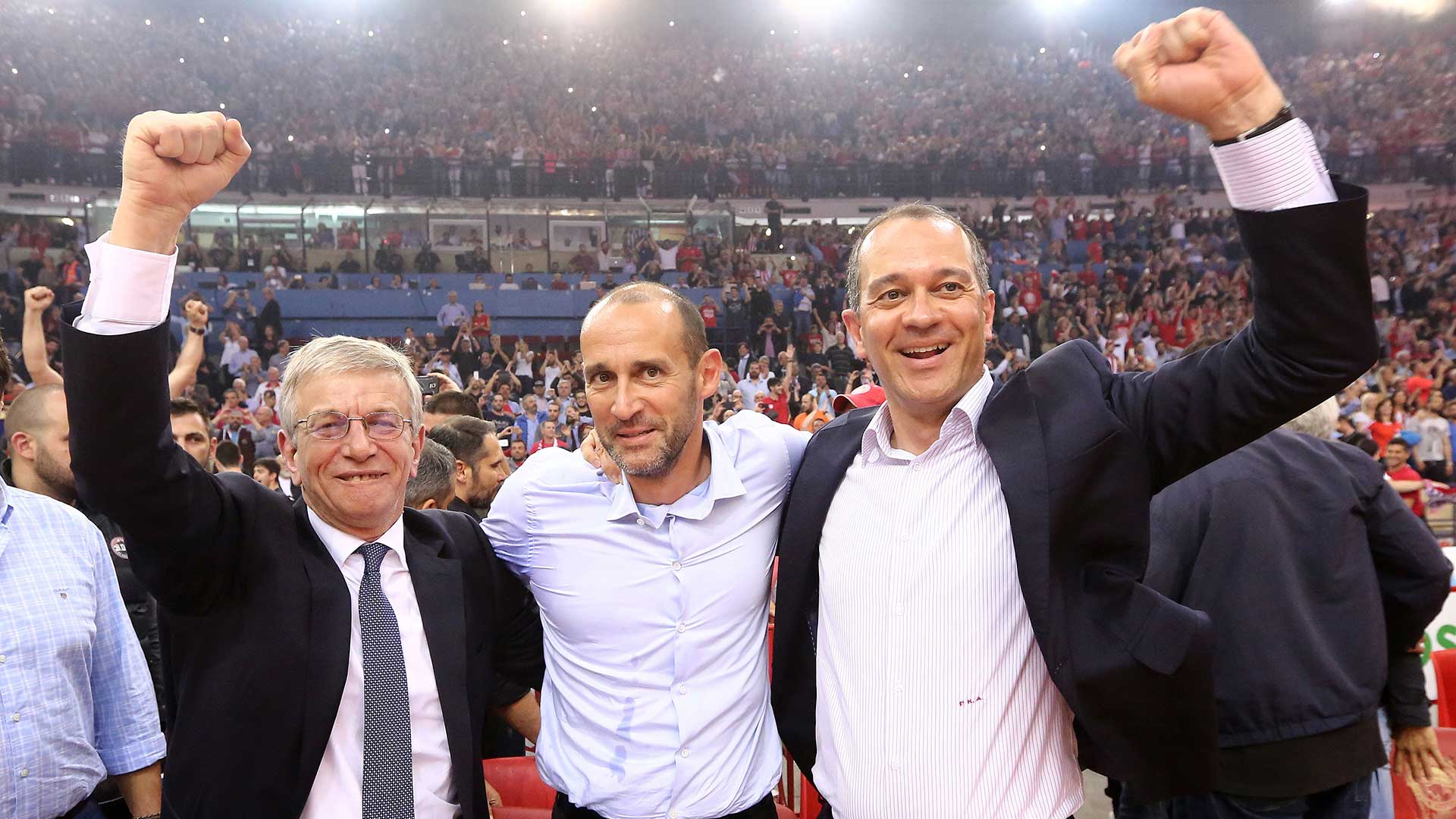 Next season, the Presidents of Olympiacos celebrate winning the most special championship in the team's history. The two buzzer beating threes by Vassilis Spanoulis in the second and fourth final, lead the 'reds' to second League title in a row, while in 2017, the Piraeus team make one more Final Four, this time in Istanbul, eliminate CSKA in the semis but fall short against the 'hosting' team of Fenerbahce.