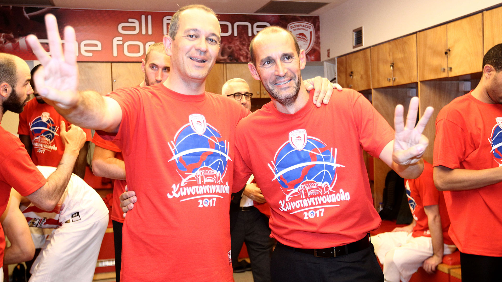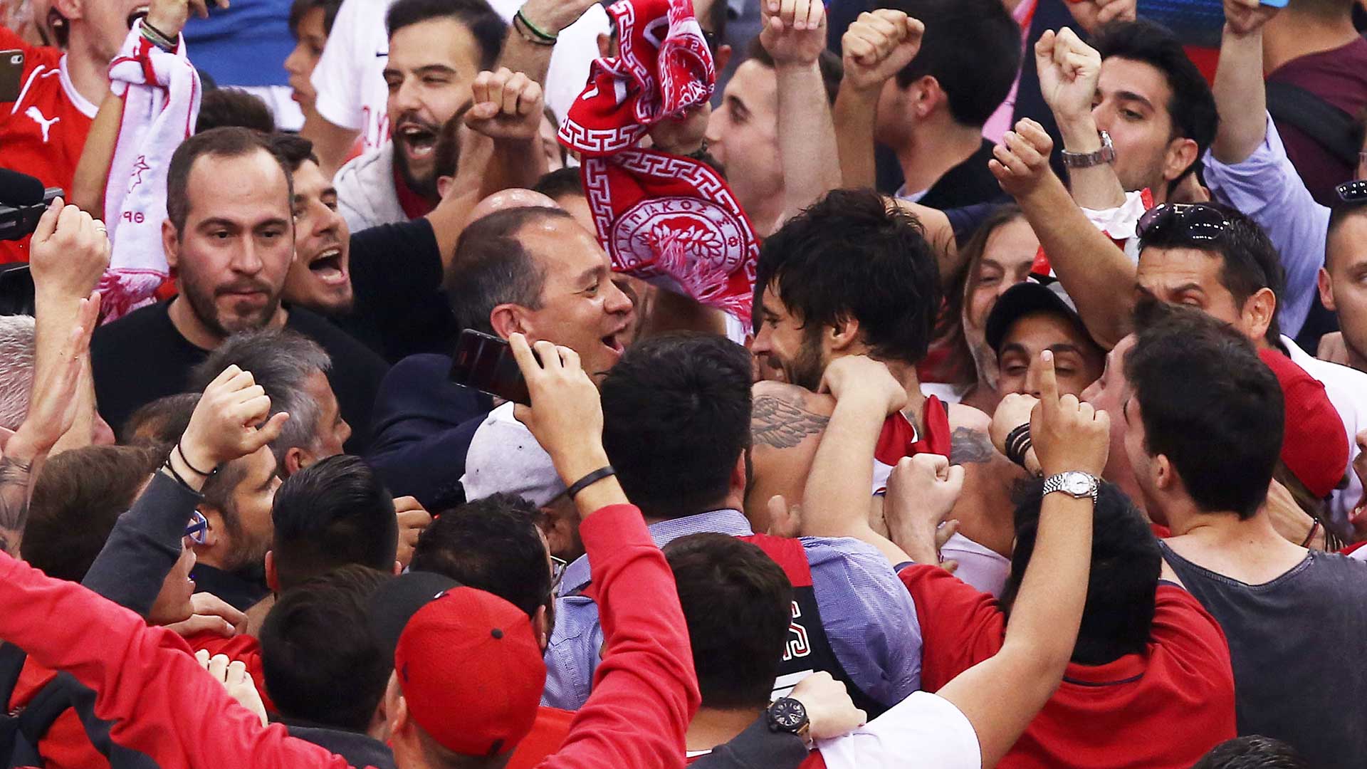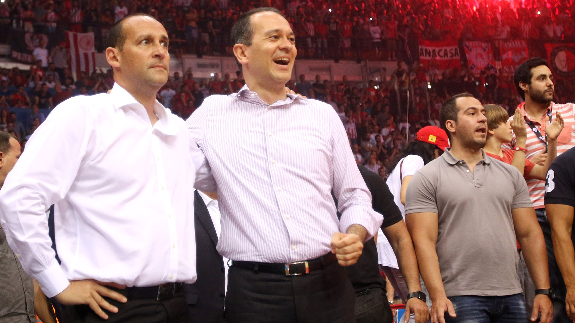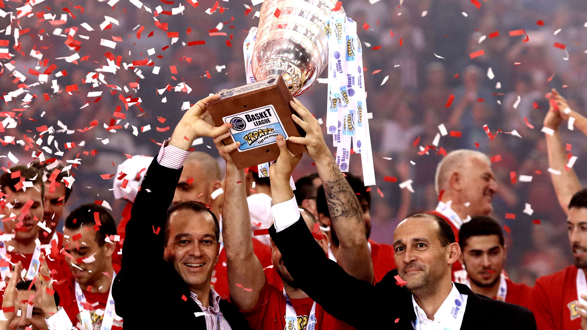 Next season, the Presidents of Olympiacos celebrate winning the most special championship in the team's history. The two buzzer beating threes by Vassilis Spanoulis in the second and fourth final, lead the 'reds' to second League title in a row, while in 2017, the Piraeus team make one more Final Four, this time in Istanbul, eliminate CSKA in the semis but fall short against the 'hosting' team of Fenerbahce.
