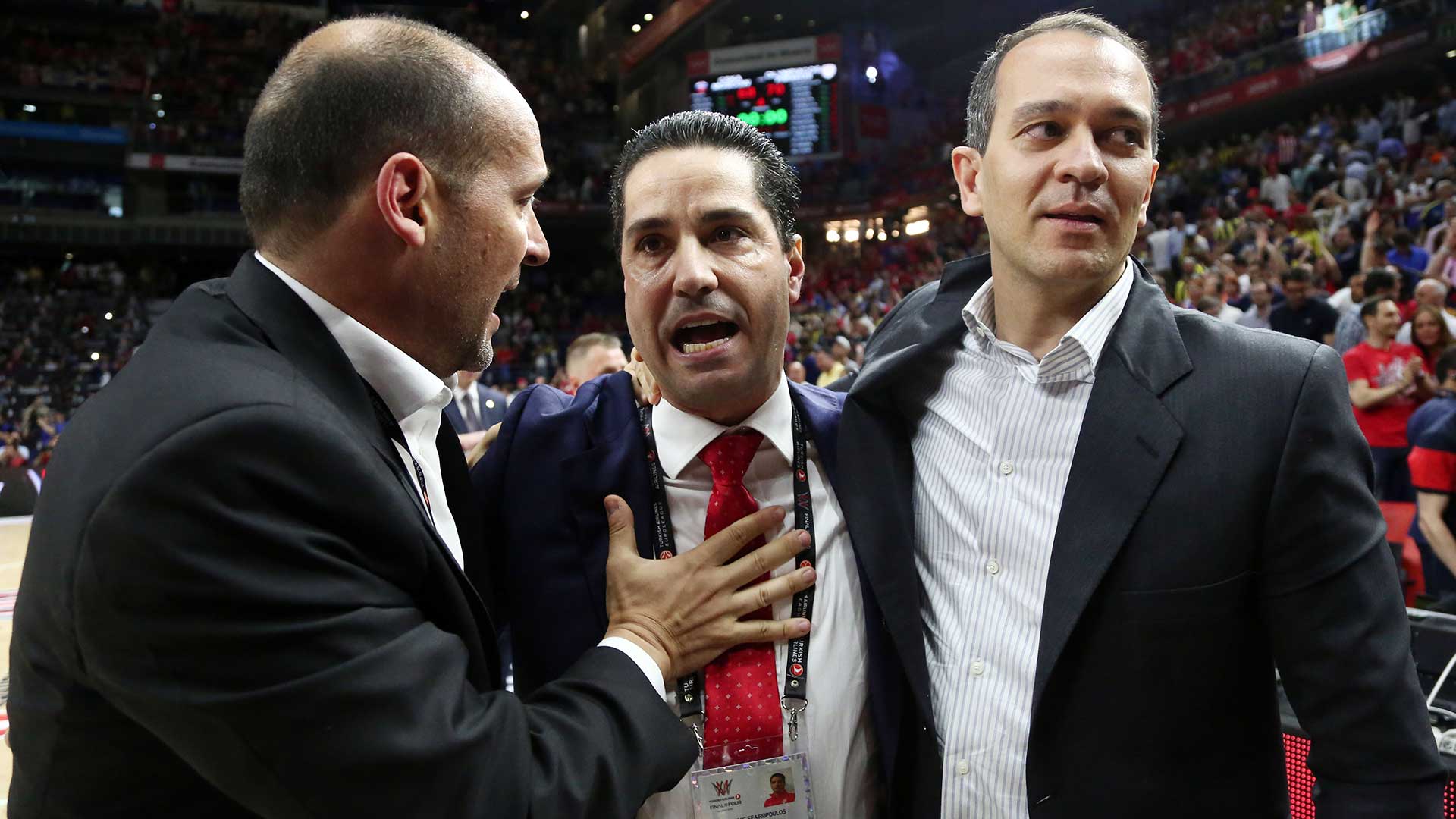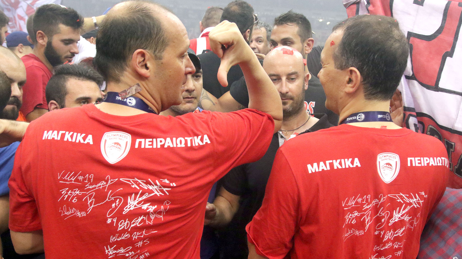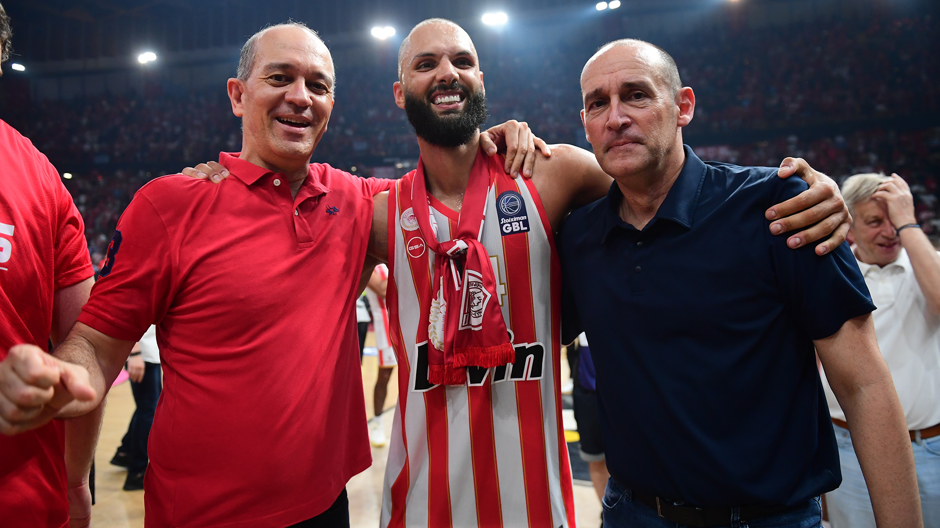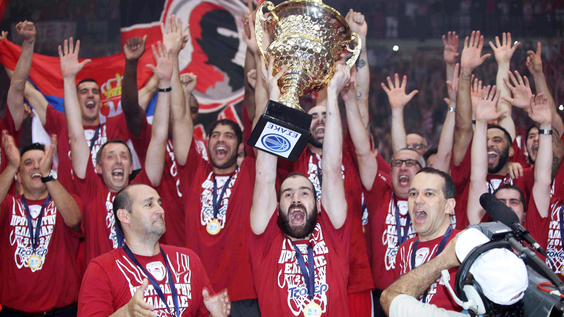 Next season, the Presidents of Olympiacos celebrate winning the most special championship in the team's history. The two buzzer beating threes by Vassilis Spanoulis in the second and fourth final, lead the 'reds' to second League title in a row, while in 2017, the Piraeus team make one more Final Four, this time in Istanbul, eliminate CSKA in the semis but fall short against the 'hosting' team of Fenerbahce.