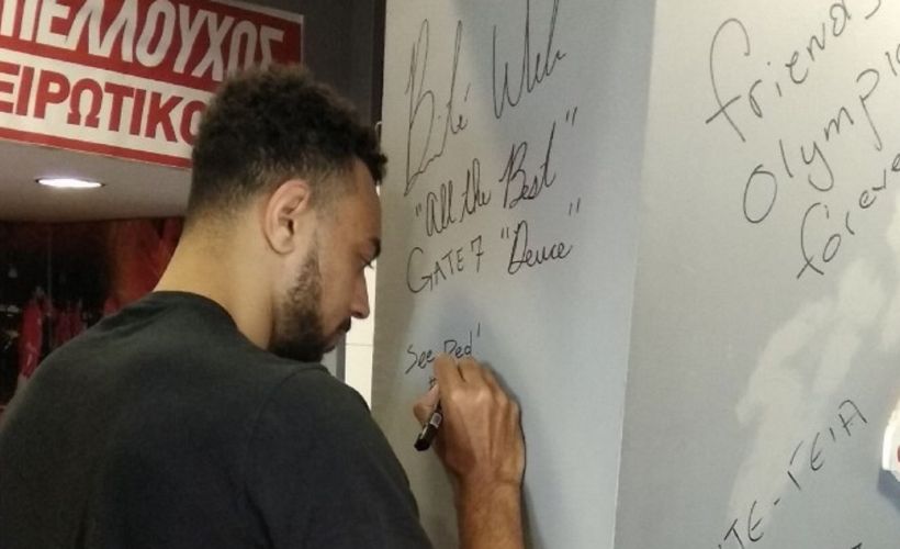 Nigel Wiliams-Goss, the American guard for Olympiacos, visited the Official Olympiacos BC on Thursday, May 30 (Karaoli Dimitriou 8, N. Faliro, 18547 Piraeus), bought merchandise and did not forget to leave his message on the store’s wall.