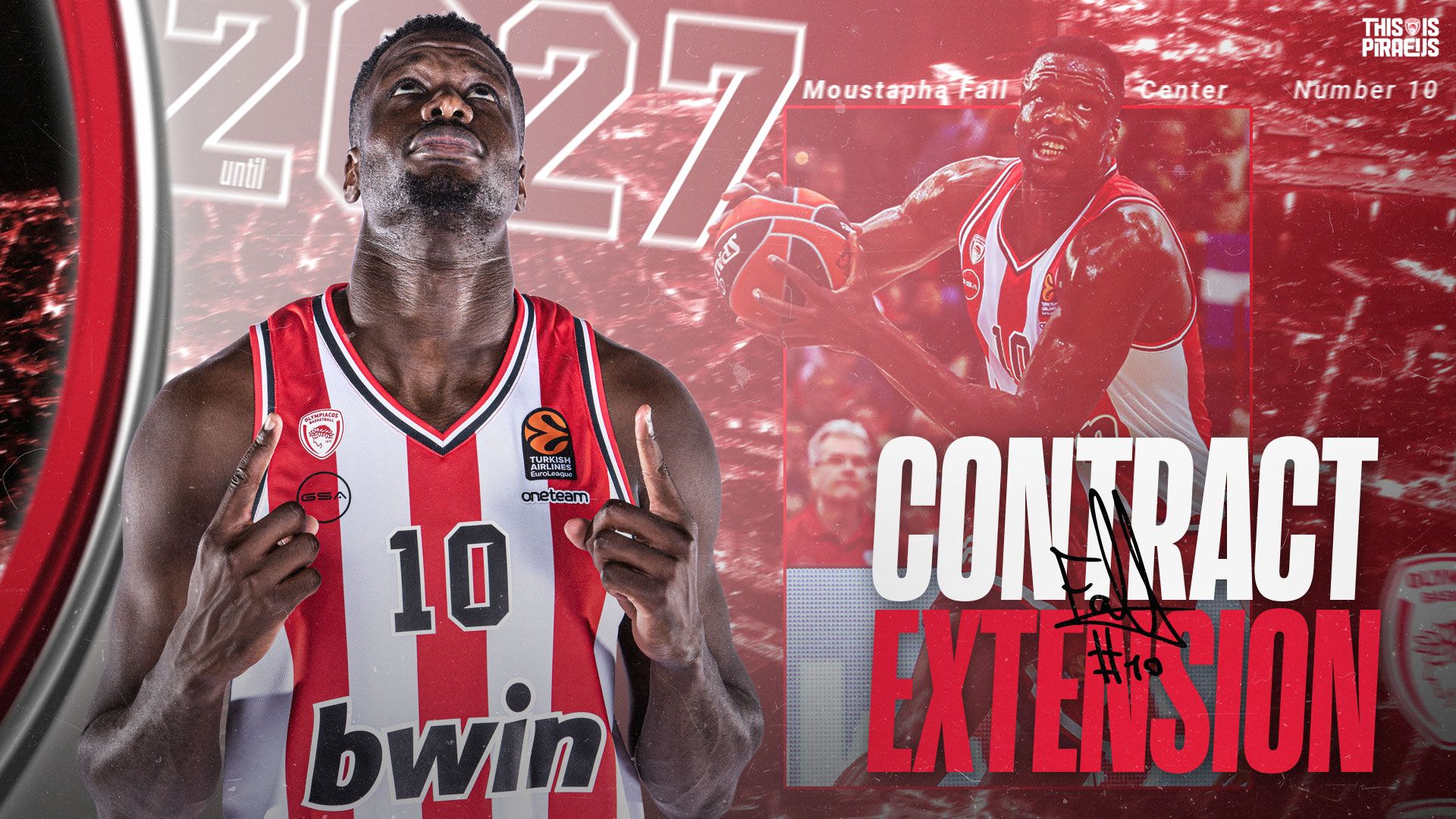 Olympiacos BC announces the extension of its cooperation with Moustapha Fall until the summer of 2027.