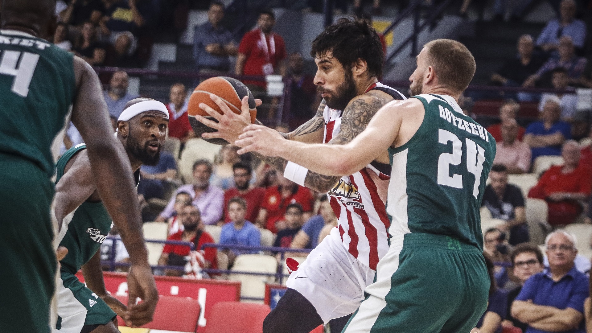 An extremely well read and prepared Olympiacos beat Panathinaikos Superfoods in OAKA 75-65 and low leads the finals series of the STOIXIMAN.GR Basket League 1-0 having Kostas Papanikolaou as his top scorer.