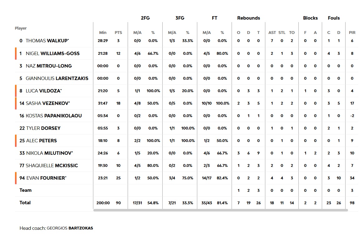 The third quarter began with Paris running a partial 3-12, the result of bad offensive decisions and inefficiencies of the 'red &white' defensive system (47-62, 23'). Sasha Vezenkov and Shaquielle McKissic tried to keep our team close to the score, while we were losing the battle for the rebounds and could not match up the guests' energy, ending the third quarter with a 60-73 score. In the last ten minutes, our team lacked clear thinking and the Parisiens playing with the same energy levels succeeded in getting far ahead with their lead (60-80, 33'). It was there that Olympiacos managed to show reflexes and with a magical four-minute period, that led Splitter's team to successive turnovers, managed an astonishing comeback, running a 22-0 partial (82-80, 37')! Paris found two threes up next (82-86, 38'), that gave them a 4p. lead following two missed attempts at scoring by our team and turning the game into a derby for the final two minutes. Two free throws by Vezenkov and a finisher by Nigel Williams-Goss followed to tie the score again, this time 86-86, with the guests finding a three 20'' before the clock expired, which made the score 86-89. It was Evan Fournier's turn a little while later to find a huge three with only 6'' on the clock (90-91), but the guests remained poised behind the free-throw lines (90-93) and the game subsequently ending at 90-96.