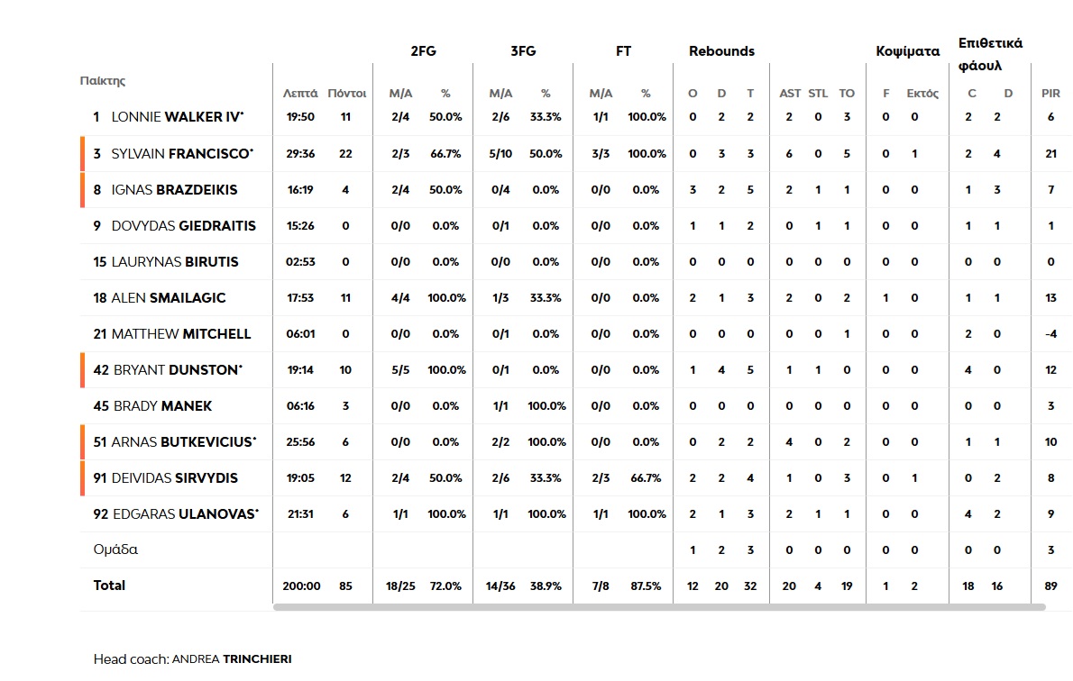 The 'red & whites' did not start the game well. Lacking clear thinking offense wise, as well as the required concentration in defense, they trailed the score early on (10-4, 4'). Thomas Walkup offered some score (18-10, 7'), while two back-to-back threes by Kostas Papanikolaou and Sasha Vezenkov made for a 2-point game (18-16), before the first quarter ending at 22-18. The second quarter began with a stolen ball that led to dunking in the fast-break (Shaquille McKissic, 22-20). The American player took center stage, offering lots of energy to our team's game (34-30, 14'). Ineffecient defense and lost rebounds though, gave the hosts the opportunity to once again up the difference to double digits (44-32, 17'). At that point, Nigel Williams-Goss and Evan Fournier took over, temporarily shrinking the margin (44-40, 28'), for Trinchieri's team to reply with an 8-0 of their own, again striking from the long range (11/17 3p.), with half-time ending at 52-40.