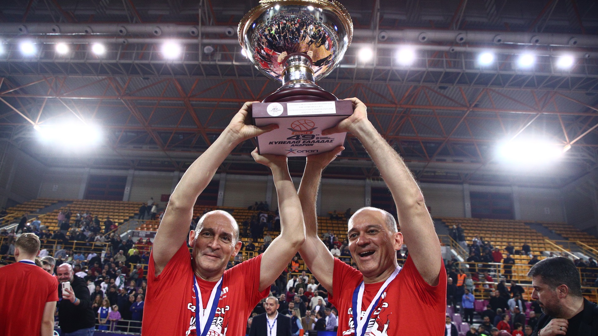 The Presidents of Olympiacos BC, Panagiotis and Giorgos Angelopoulos, talked about the significance of winning the 3rd consecutive Greek Cup title and gave apotheosis to the team's coach, Giorgos Bartzokas, for his creation.