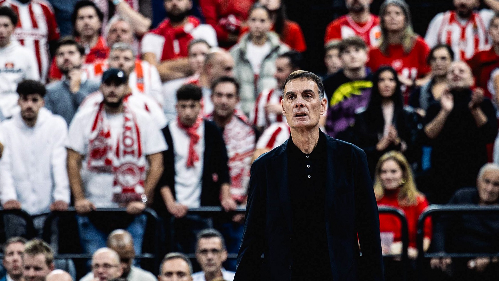 Olympiacos coach Giorgos Bartzokas praised the team’s fans after the big road win in Munich.