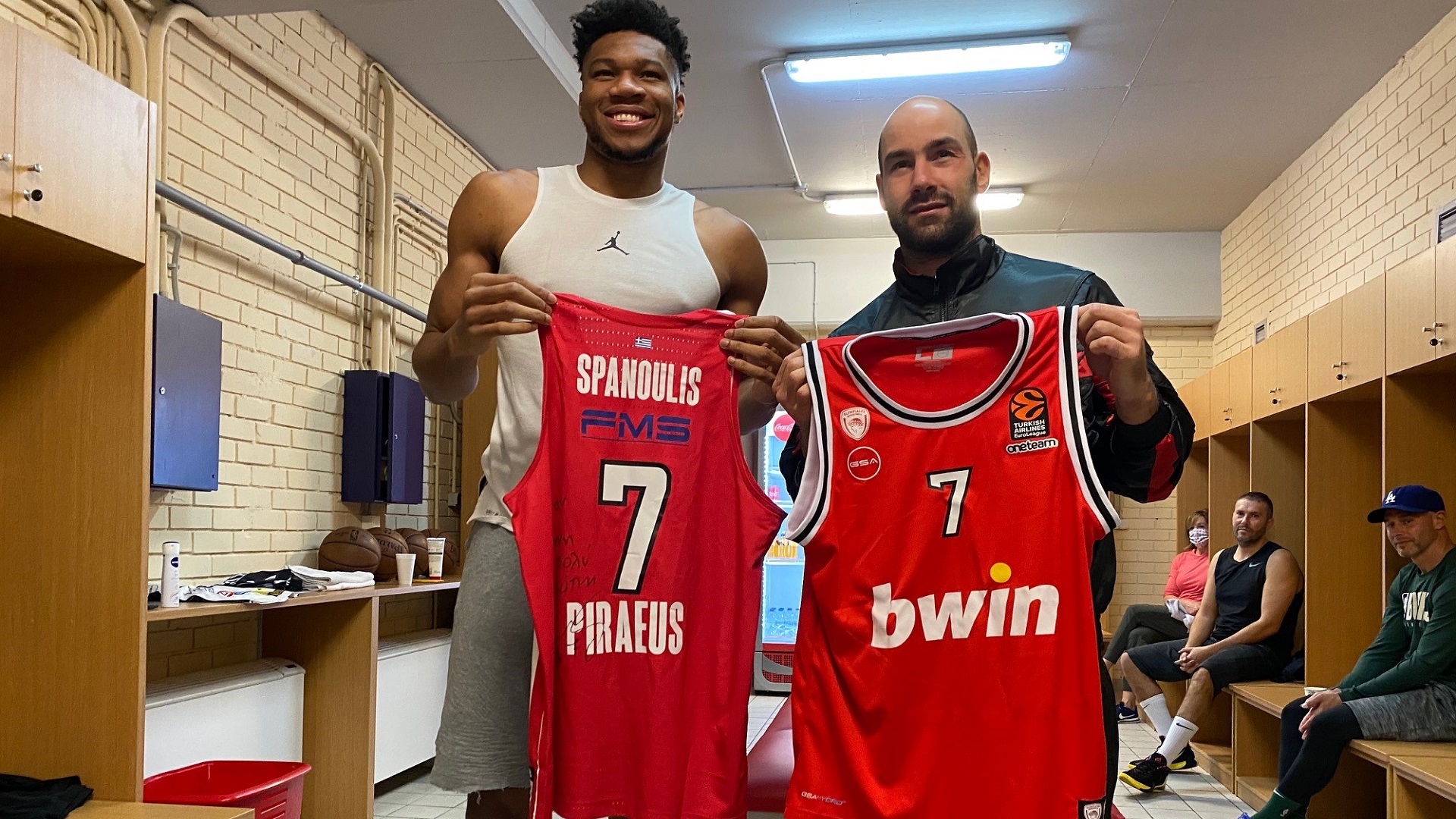 The best player in the world, Giannis Antentokoumpo, is in Greece preparing for the new NBA season, practicing at the facilities of the Peace and Friendship Stadium. The 26-year old guard for the Milwaukee Bucks met with Vassilis Spanoulis and the Olympiacos’ captain gave him two of his jerseys.