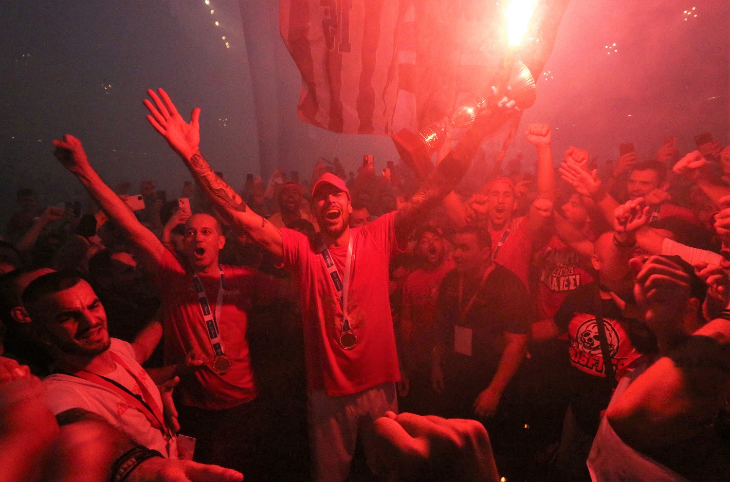 Olympiacos came to the fountain, but an incredible shot by Micic at the buzzer denied him the chance to drink… The 12,000 fans of the ‘reds’ not only were not disappointed, but remained in Belgrade and presented Giorgos Printezis with unprecedented apotheosis in his last European game for the 3rd place final. “I love them very much, I love you all”, were all he managed to utter with teary eyes, when Joe Arlauckas blindsided him giving him the mic during the half-time break. The game against Real is over, but no one cares about the result. ‘Pri’ gets engulfed in the hugs of the Presidents, his team mates and the Olympiacos staff, when at the same time the fans never stop rhythmically singing his name.